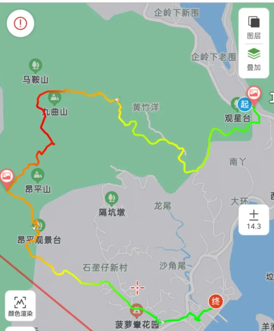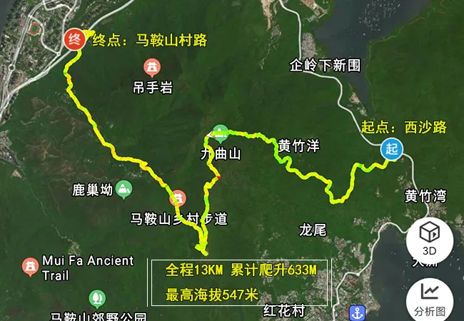 起点:西沙路,终点:西贡码头全程11公里,累计爬升633米,最高海波547米