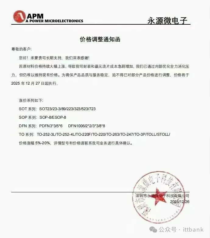 9、APM永源微电子:部分产品涨价