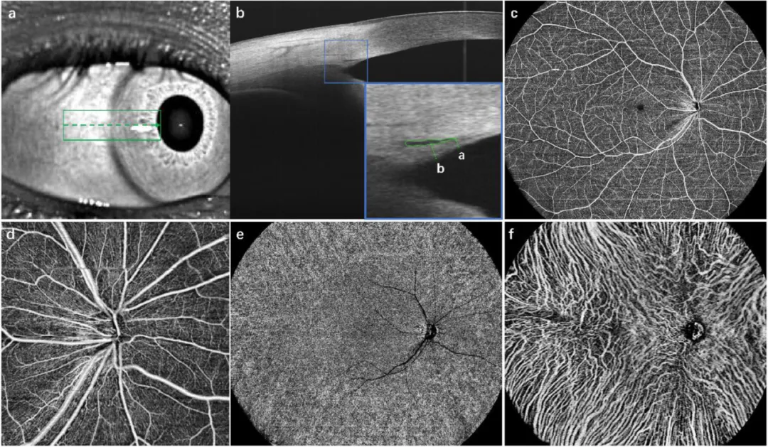 图1.眼前段(a-b)及眼后段(c-f)成像方案。