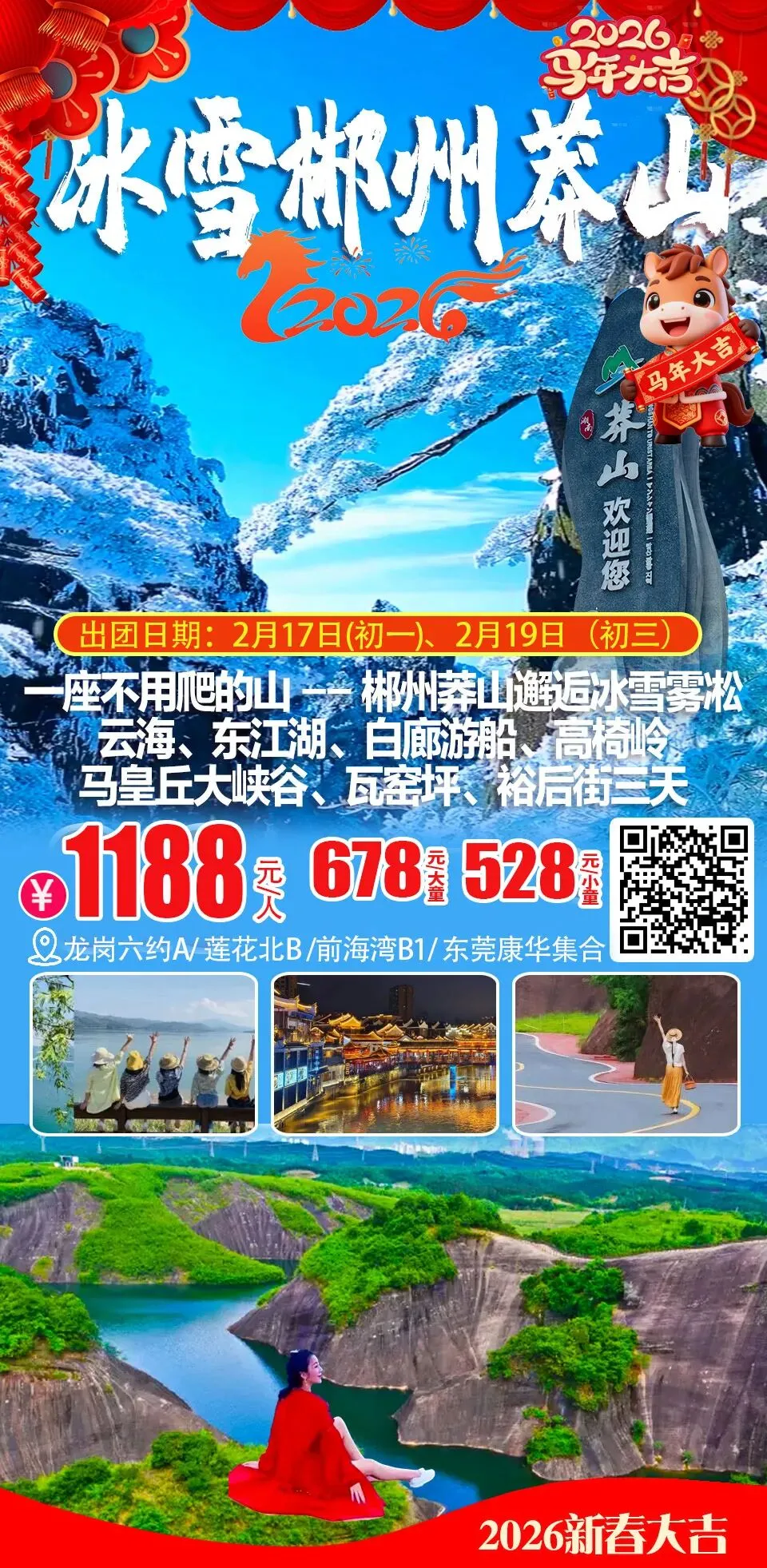 (周五及假期)郴州莽山五指峰邂逅冰雪雾凇、云海、东江湖、白廊游船、高椅岭、马皇丘大峡谷、瓦窑坪、裕后街三天