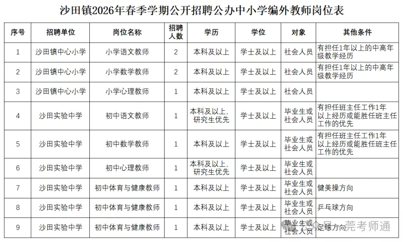 经用人单位及主管部门审核考察合格的拟聘用人员在“沙田教育微信公众号”上公示5个工作日。