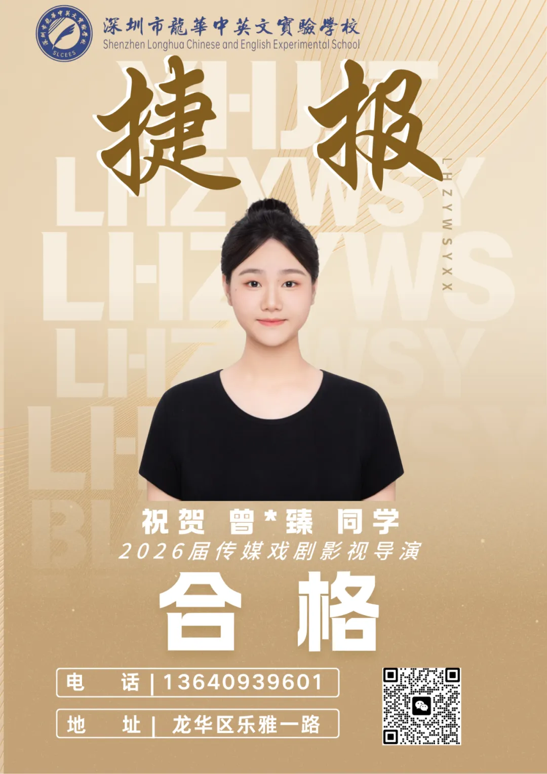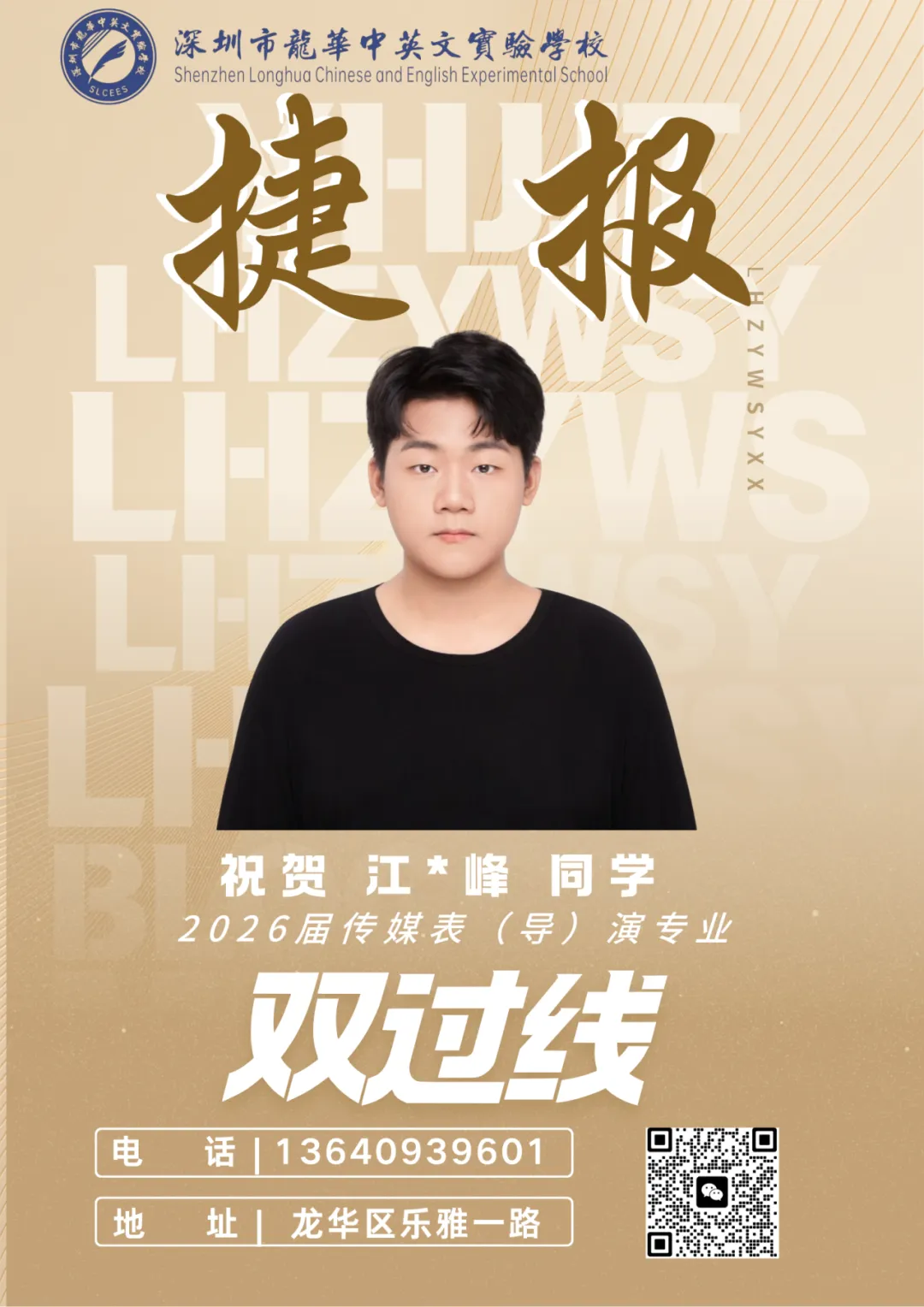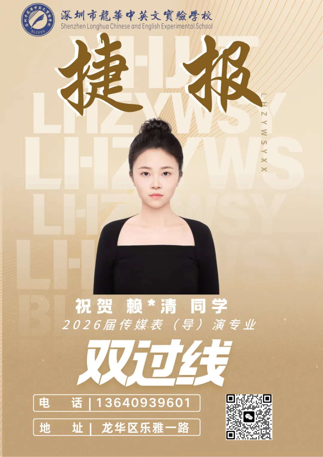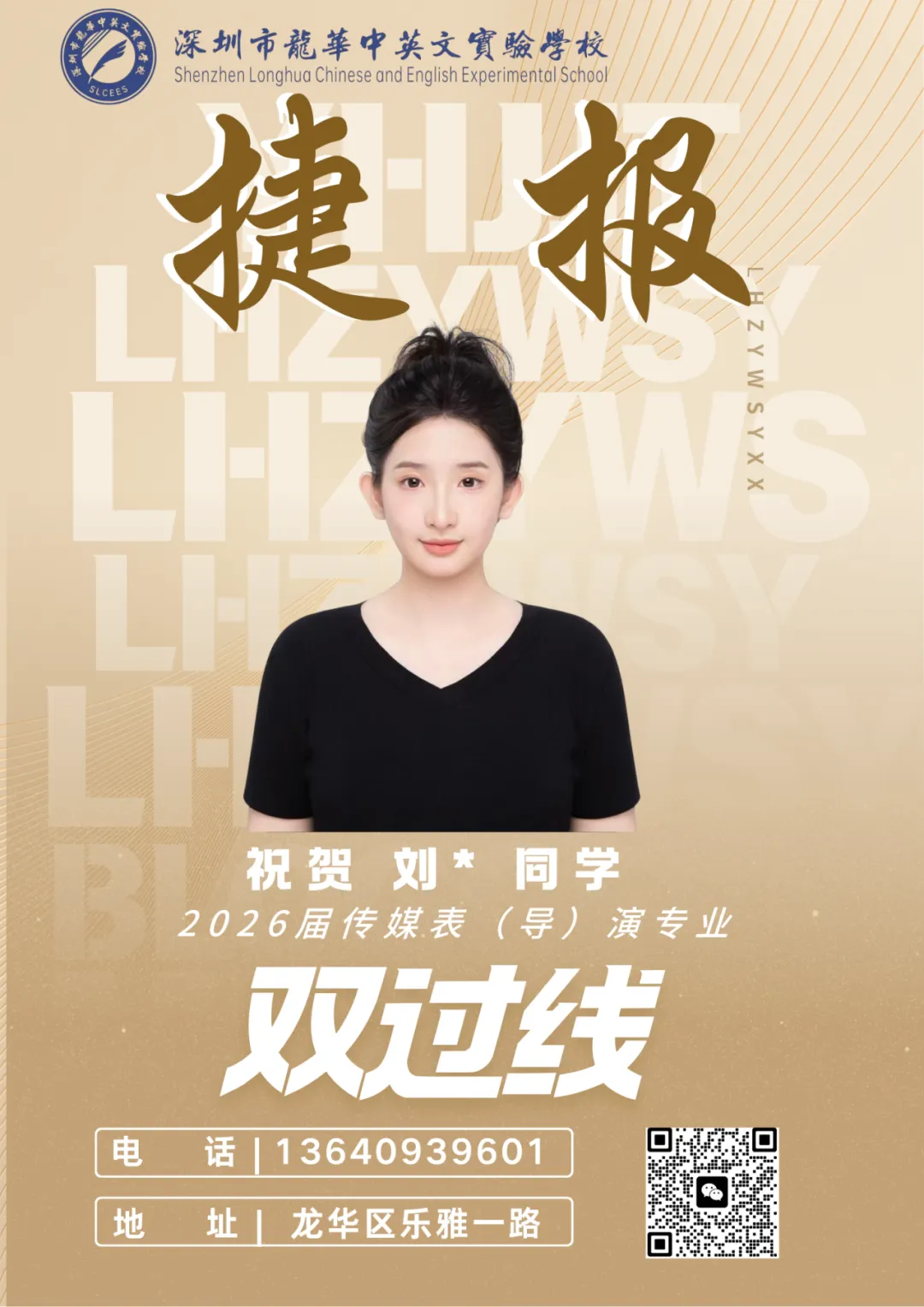 >艺考喜报丨深圳市龙华中英文实验学校2026届传媒统考全员100%上线,1人三专业过线