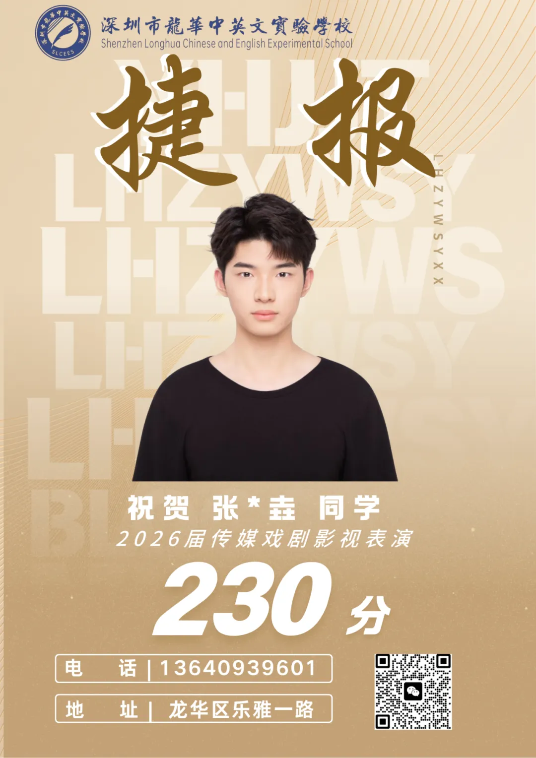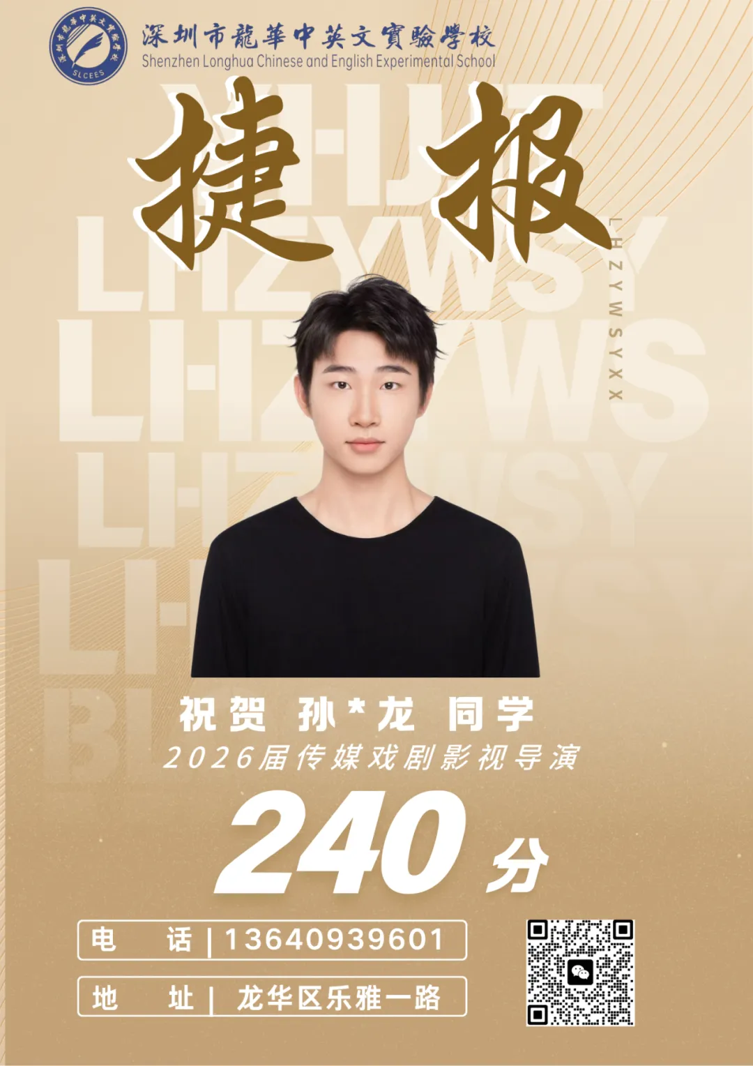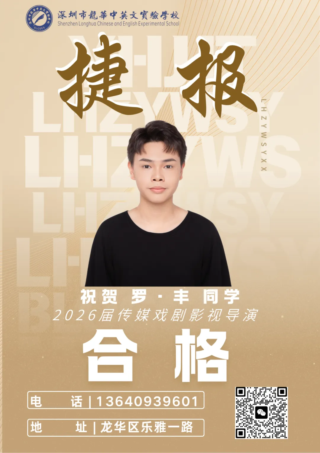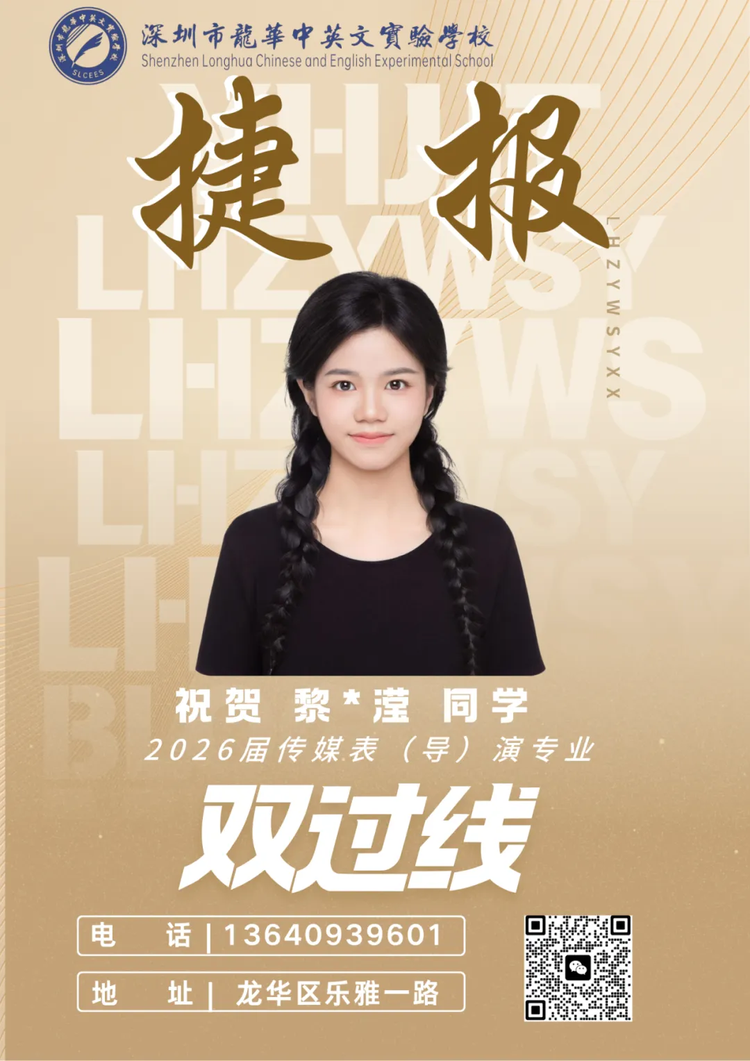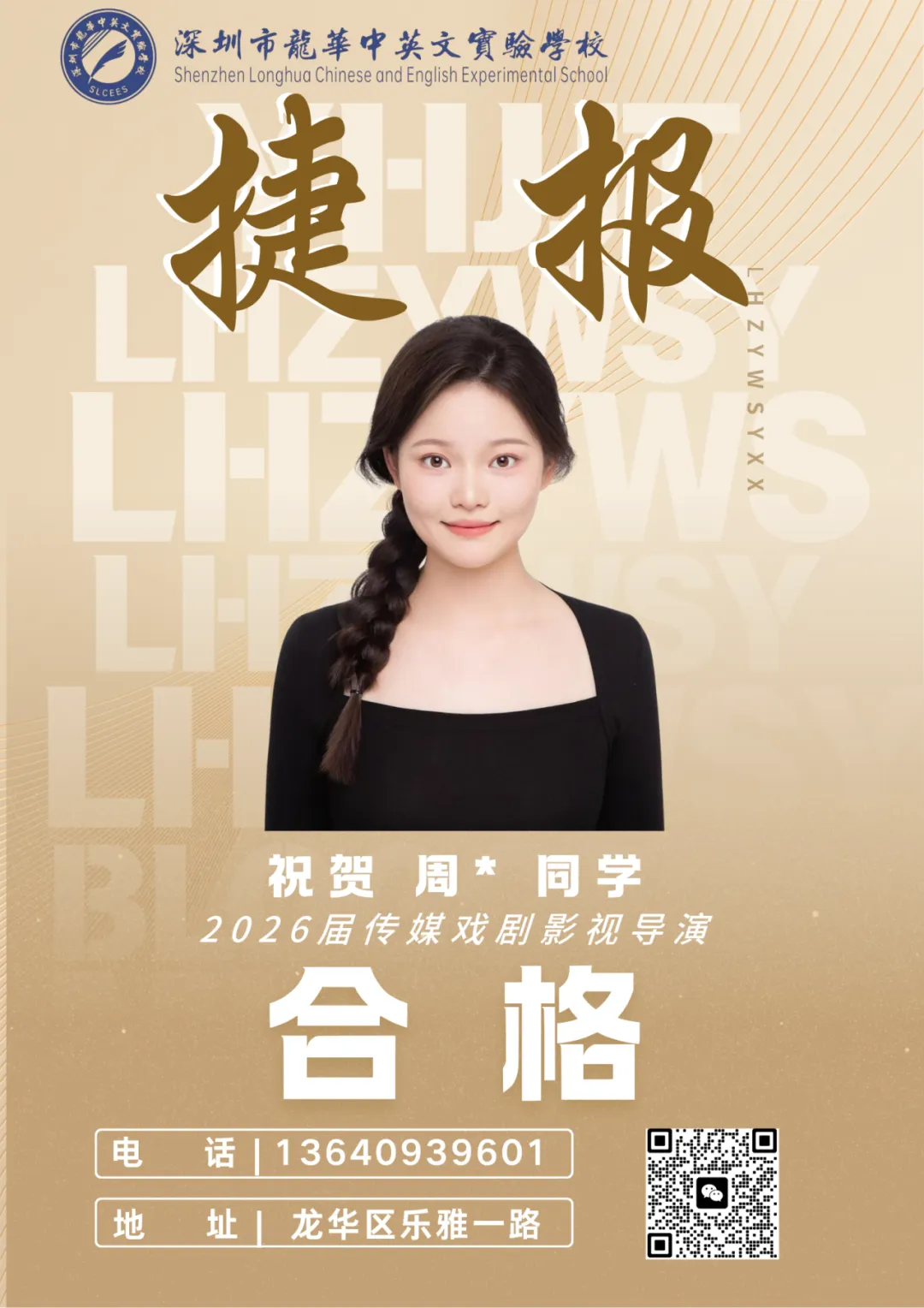 >艺考喜报丨深圳市龙华中英文实验学校2026届传媒统考全员100%上线,1人三专业过线