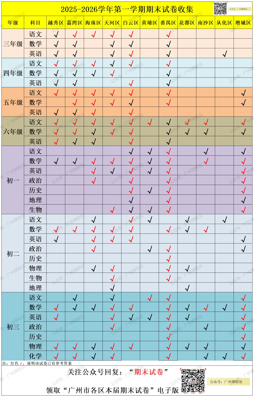 本学期小学、初中期末试卷及答案出炉!黄埔、越秀、荔湾、海珠、天河、白云、番禺、花都、增城、南沙、从化等持续更新中...
