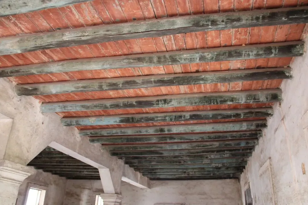 而隔层的地板却是木制的,在木板上再铺上一层薄薄的水泥,不知道是当年水泥造价太高还是这样更适合主人的喜好。