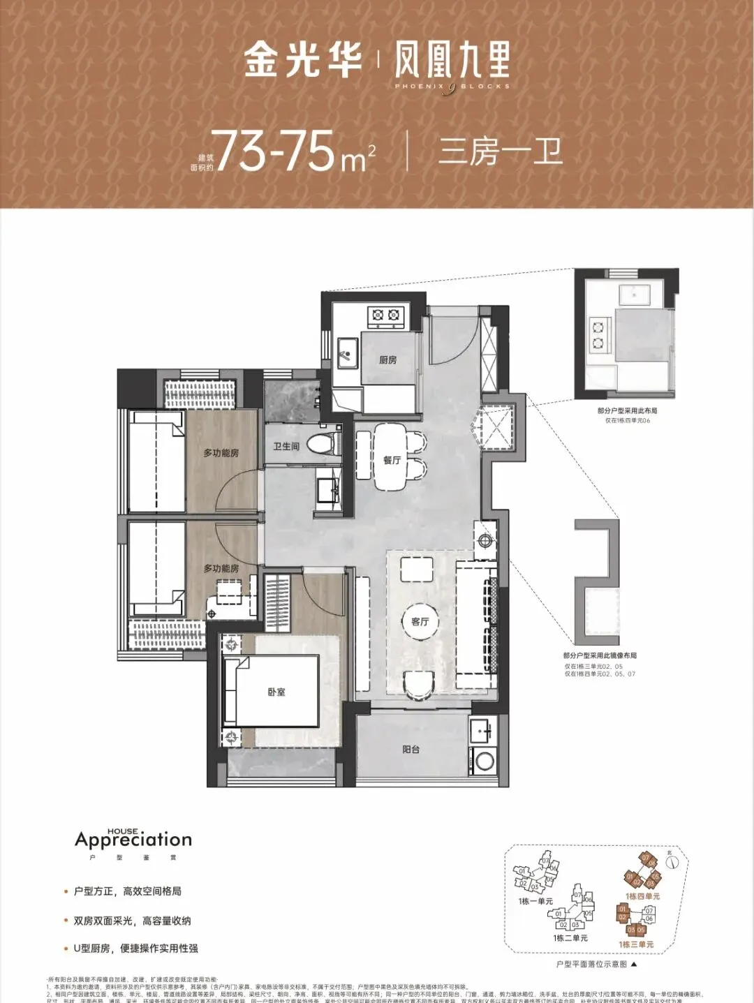 ▋建面约73-74㎡ 全能三房