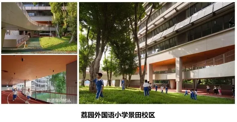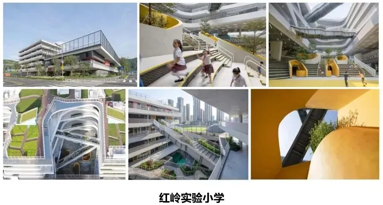 诸多杰出案例构成了福田新校园计划的核心成果:何健翔(中国独立建筑师,源计划建筑师事务所创始人)设计的红岭实验小学,这是新校园行动的闪亮起点,树立了“高密度校园”新范式,至今仍是极具影响力的首个高密度校园类型“创新样本”;一十一建筑设计的新沙小学、董功(北京建筑师学会副理事长、直向建筑设计咨询北京有限公司创始人、主持建筑师)设计的荔园外国语小学景田校区亦颇具代表性——为保护场地中的小树林、原生土壤及一段城市发展记忆,董功耗费数年心力推进“保卫战”,最终呈现的校园实景令人欣慰。