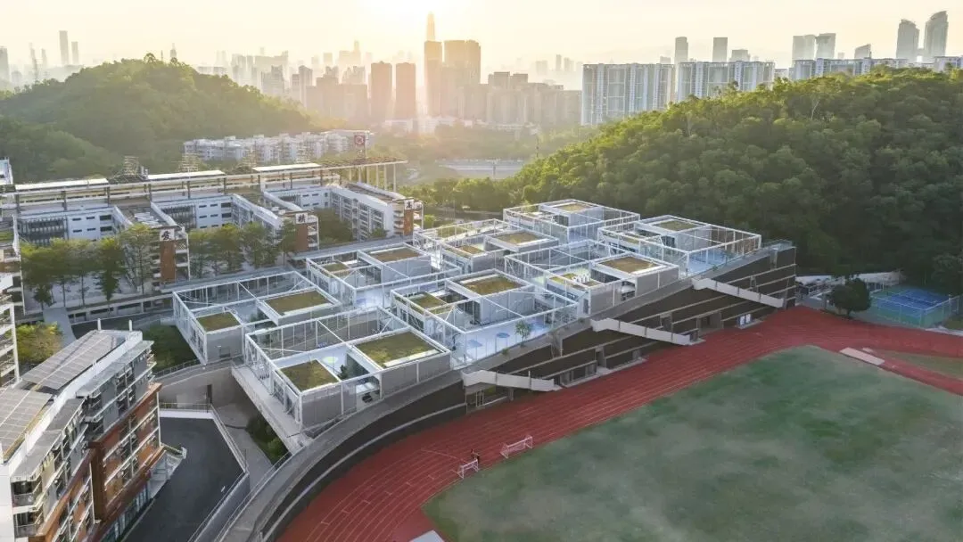 靳远设计的学府中学,核心解决操场使用矛盾——此前师生抢用操场现象突出,甚至存在霸凌隐患。改造围绕操场展开“精耕细作”:将原本硬隔离的仿古围墙改为游廊作为教学区和运动区之间的过渡缓冲,上层设看台,下层为风雨连廊及功能区;在操场中央增设了覆盖两个篮球场的风雨顶棚,适配南方湿热多雨气候。实际使用中,该空间意义更超越体育课的日常性,更具有公共空间的类型意义:成为容纳近3000名学生集体生活的“城市广场”,可举办电影节、科技节等活动,它给了孩子们一个关于集体生活的记忆载体。这个空间后来也成了学校的新名片,师生们为之骄傲。