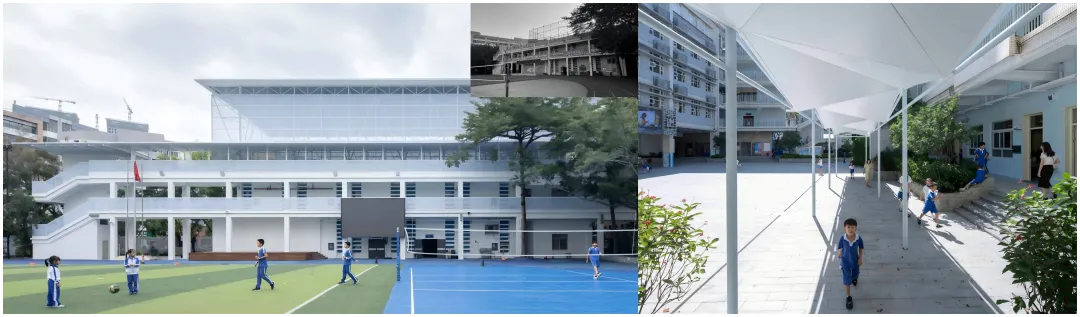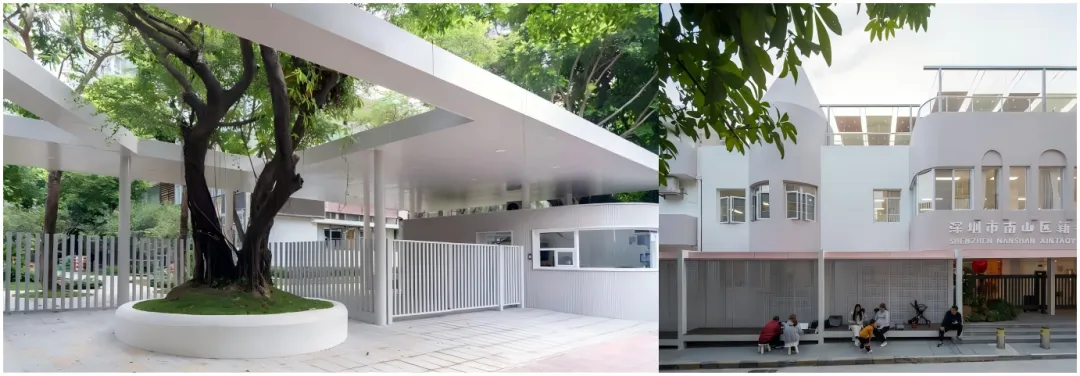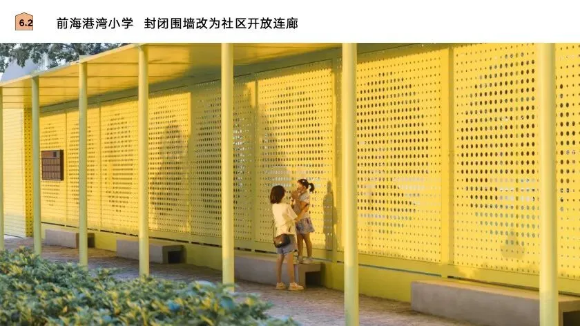 被誉为蛇口“黄埔”军校的蛇口培训中心保育活化项目由都市实践孟岩负责,增设面向社区与城市的文化展廊,取代封闭围墙延续蛇口精神与培训中心社区功能属性,成为新的城市界面。这也是深圳首例政府投资的历史建筑后备资源活化利用项目,也将成为此类项目的实践范式;北京建筑师于岛(大屿建筑设计咨询北京有限公司创始人、主持建筑师)设计的蛇口学校,打造全新城市界面,设计与现有树木交织的千步廊(已成为孩子们练舞的重要场所),并利用剩余边角空间解决就餐需求,通过围墙的重塑和校门更新,为校园带来崭新面貌。