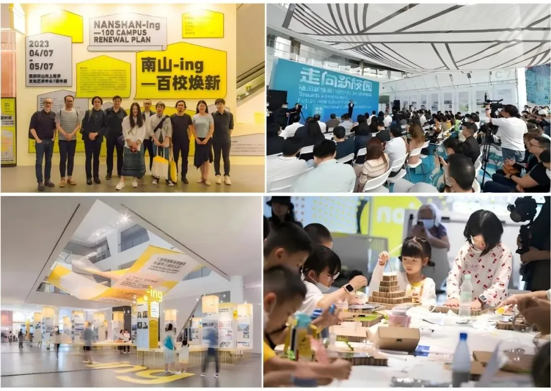 两项实践均以联展形式呈现,本质上是面向全体市民、影响广泛的公共文化事件。策展进入大众领域,实现专业知识向大众领域的“转译”,让新校园实践成为现象级案例——“深圳城市建设史上的奇迹”展览走进海上世界文化中心,连续两届参与深圳设计周,还配套举办公共教育与校园活动等等。新校园联展与百校焕新的效应和影响力辐射全国,多个城市前来学习交流,激发创新模式再实践。相关实践更引发多项政策迭代与规范优化,产生广泛学术影响力。