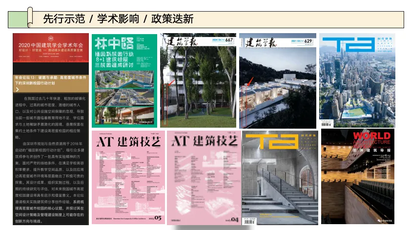 目前,新校园主题展览仍在武汉、重庆等地巡展,全媒体深度报道持续扩大影响力。相关项目斩获多项奖项和殊荣,最新荣誉为第三届三联人文“城市创新奖”。周红玫曾在领奖时表示,希望源自深圳的这些创新理念与方法论,能激发更多的公共设计管理者投身到更激烈的城市城市现场——保障房、社会住宅、保障房、社区养老等领域,继续回应每一个市民对尊严生活与人文城市的真实期待。