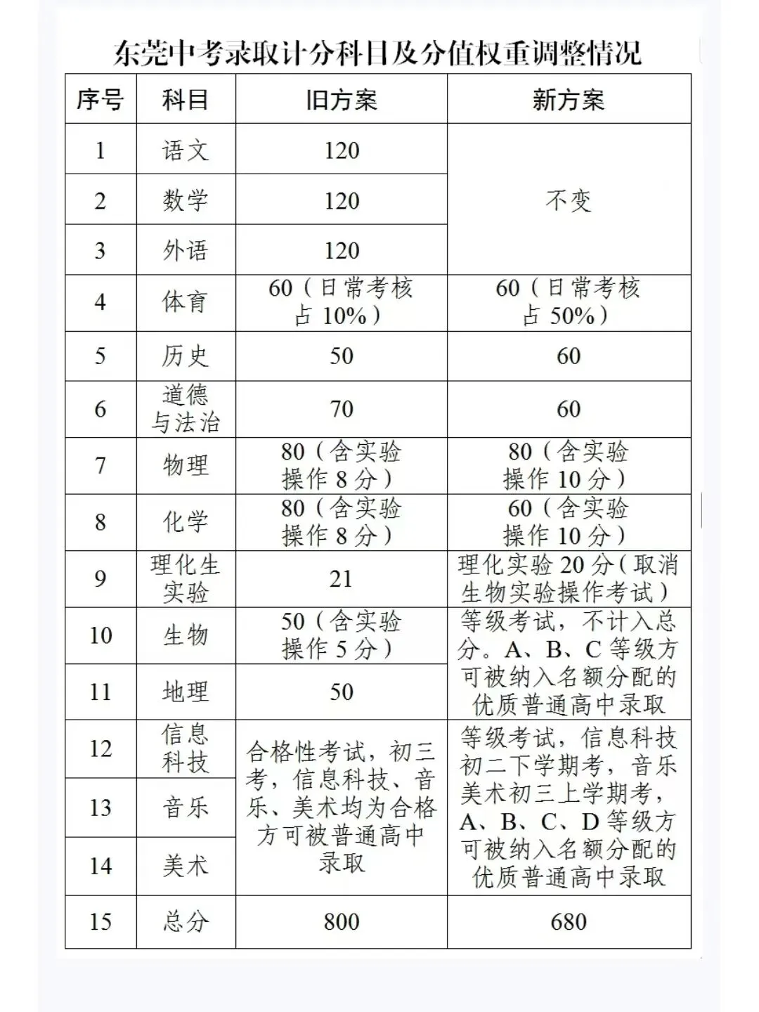 从2027年起,东莞中考录取计分科目将从10门减少为8门,招生录取总分将由800分降低至680分。
