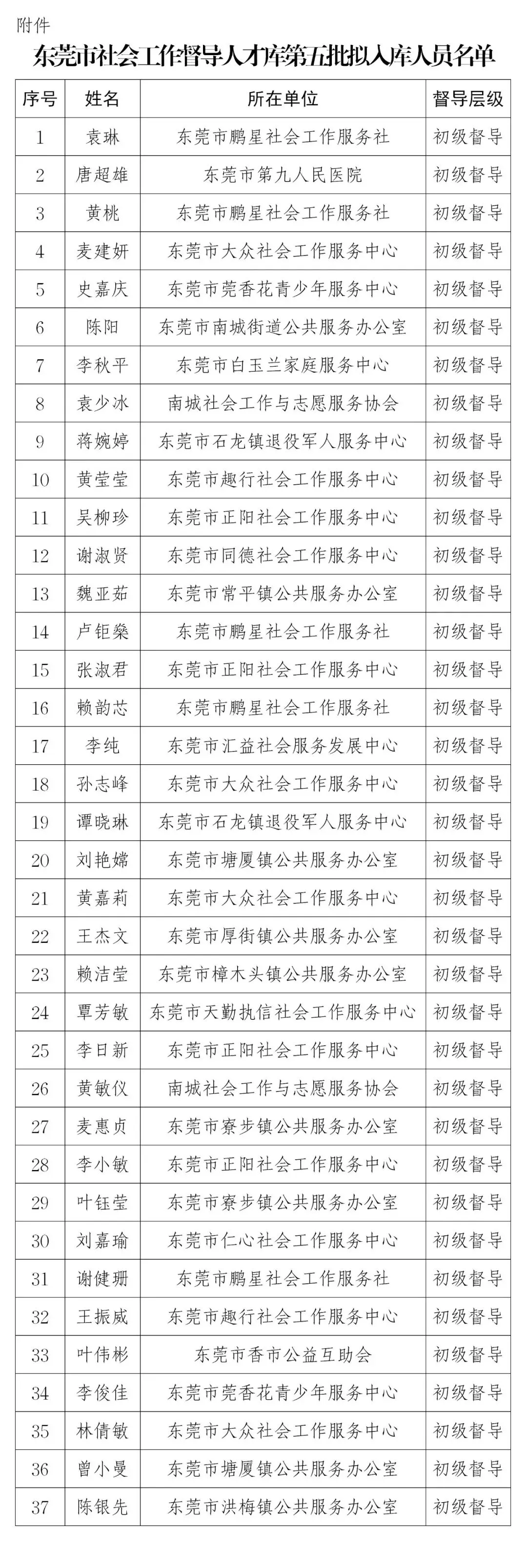 附件:东莞市社会工作督导人才库第五批拟入库人员名单