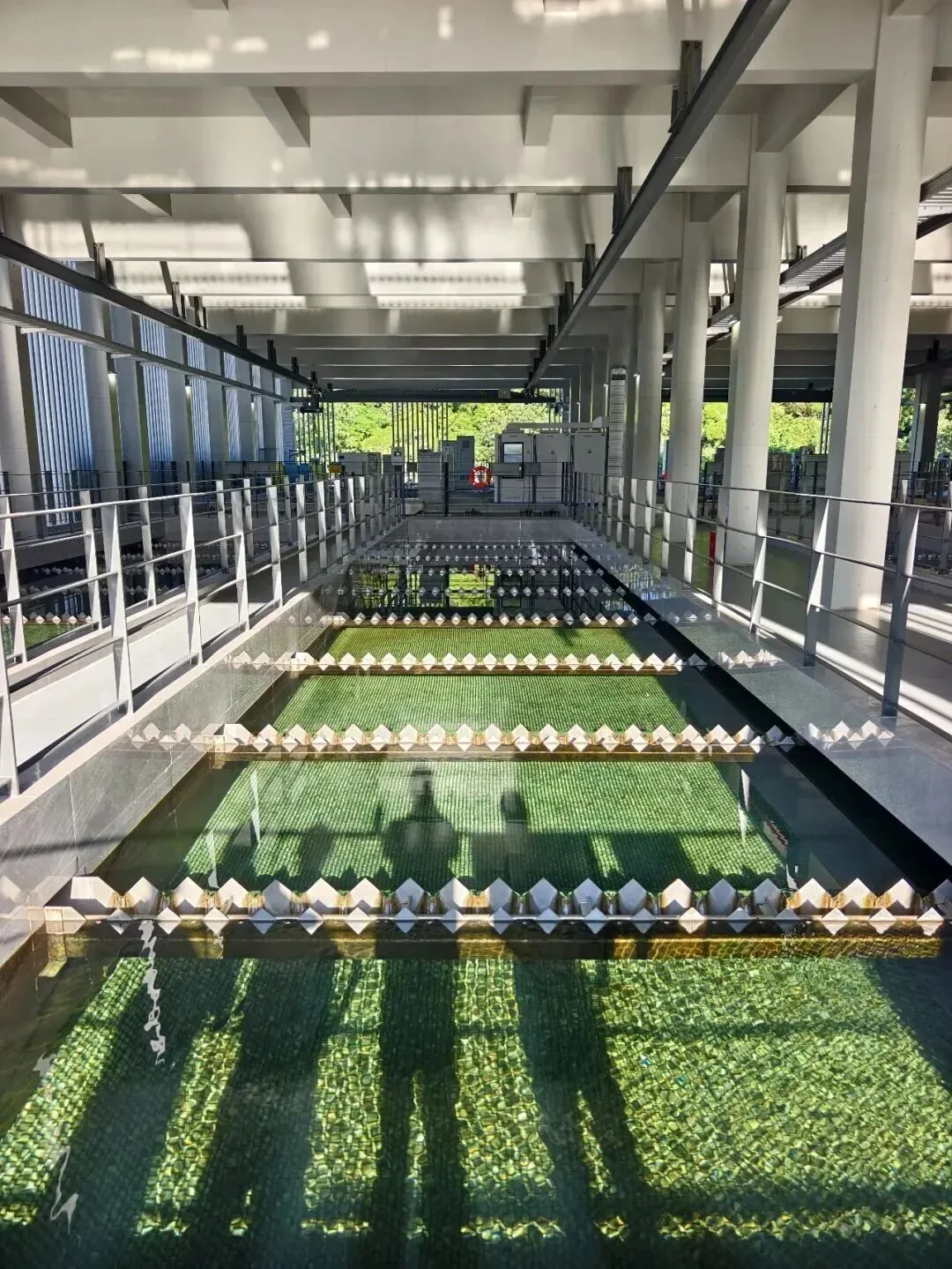 扩容改造过程中,东湖水厂可用施工场地面积为5.6万平方米,仅占国家相关标准用地下限的36%。项目团队因地制宜,首创“竖向空间池体叠合”工艺,还创新打造高效沉淀池,相较于普通的斜管沉淀池,将水处理效率提升50%-70%。