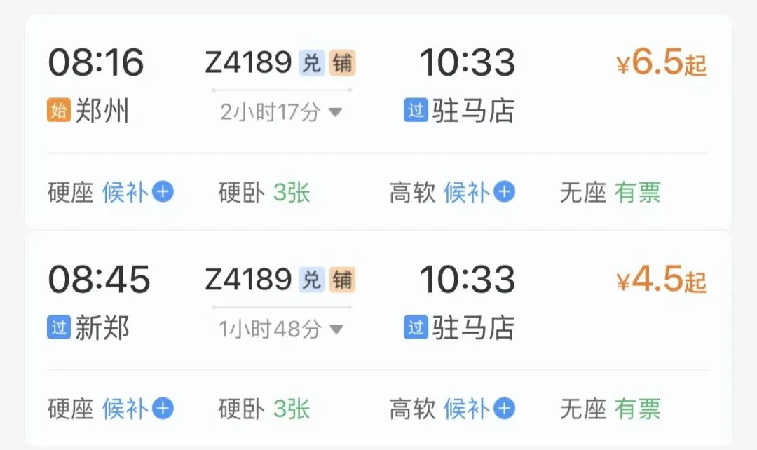 而郑州到驻马店仅6.5元