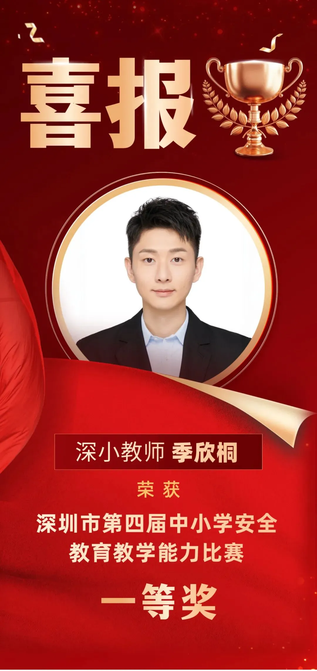 在刚刚落幕的深圳市第四届中小学安全教育教学能力比赛中,我校季欣桐老师凭借扎实的专业功底、新颖的教学设计与沉稳的课堂表现,经过三轮激烈角逐,从全市众多优秀教师中脱颖而出,荣获一等奖。
