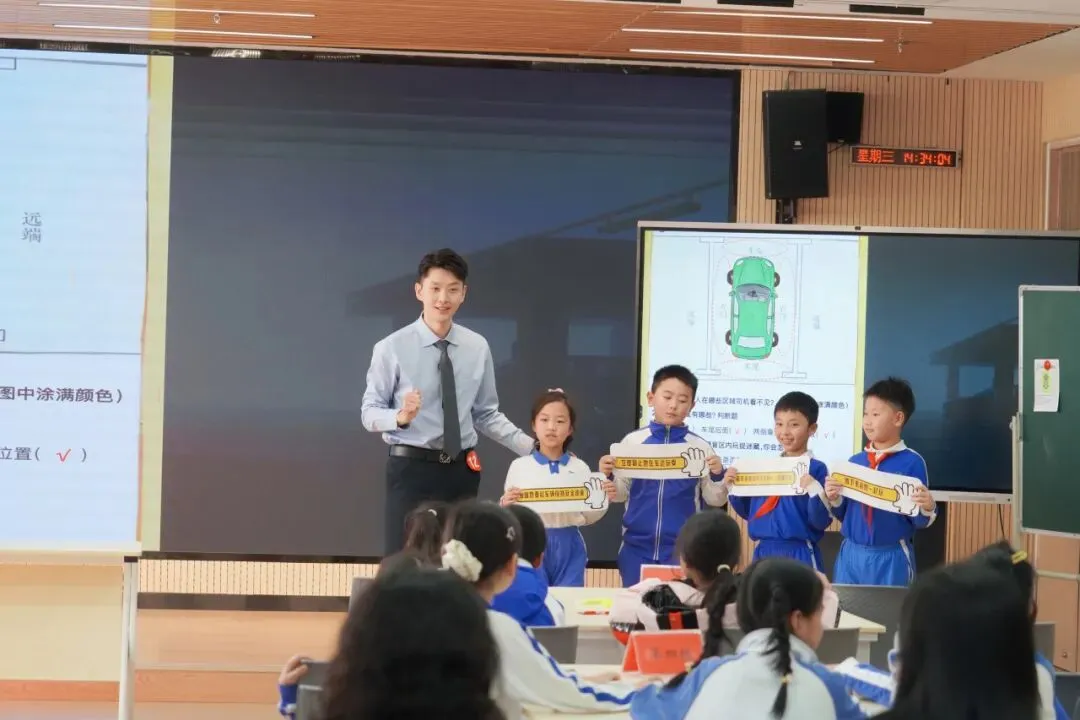 本次大赛采用“说课—视频课—现场教学”三重赛制,全面考察教师的综合教学素养。在说课环节,季老师以“课间安全”为主题,聚焦学生风险识别与自主管理能力的培养,教学设计环环相扣,理论基础深厚。视频课环节,他围绕心理健康主题,巧妙链接情绪管理与积极行为引导,通过情境模拟让抽象知识变得生动可感。在现场授课中,季老师以“交通安全”为内容,创设真实情境,融入AI模拟与实地体验环节,引导学生通过角色扮演、小组合作深化安全认知。课堂互动热烈,充分展现了季老师出色的课堂驾驭与应变能力。