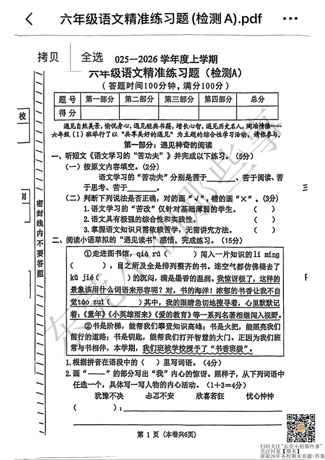 大队长发起的【期末试卷有奖征集活动】火热进行中~目前我们收集到翰林4-6年级、长安6年级期末试卷和答案。一起来看看吧~