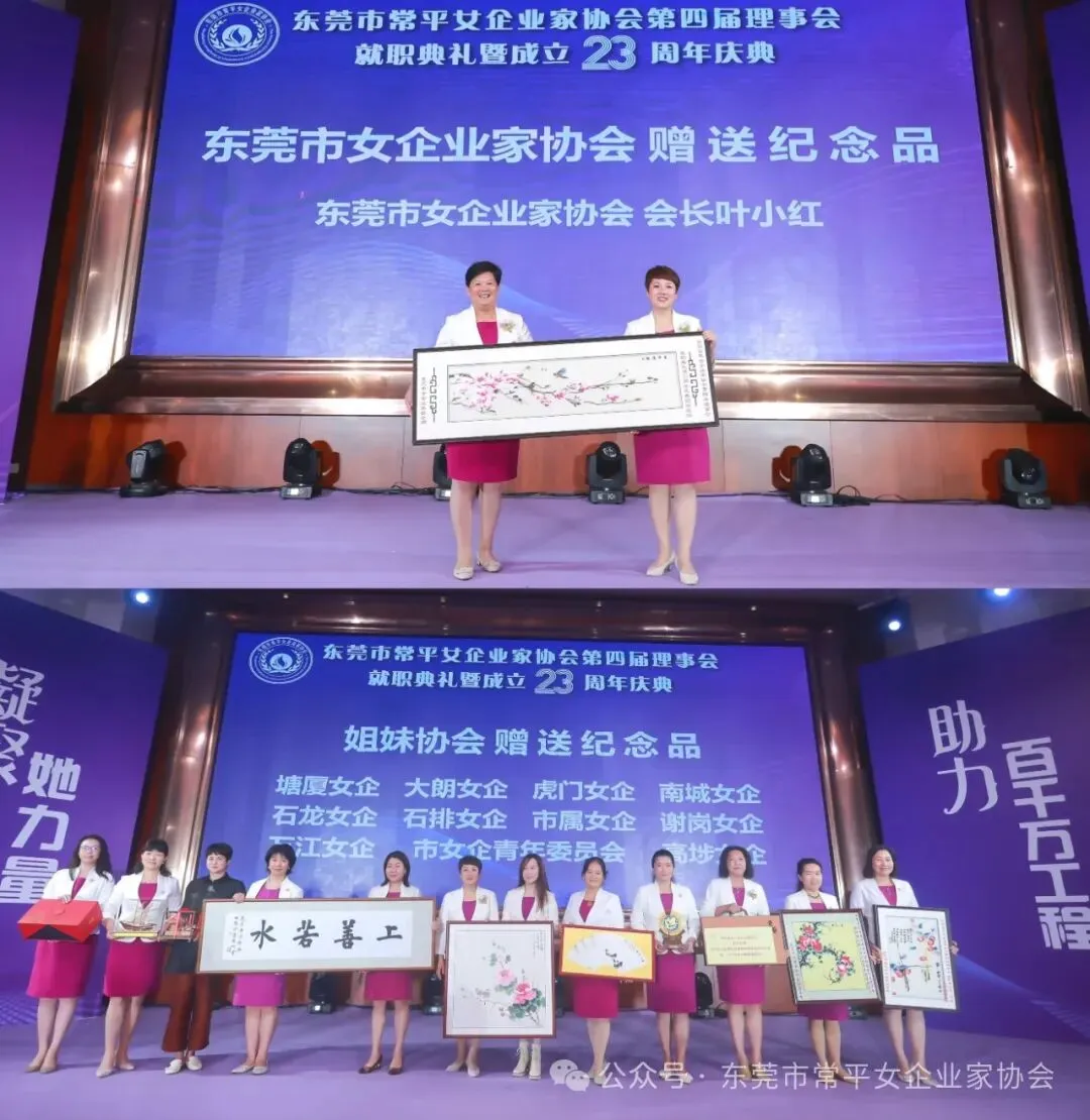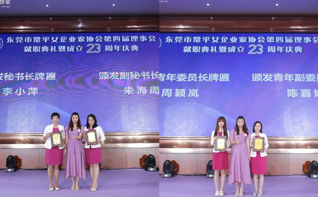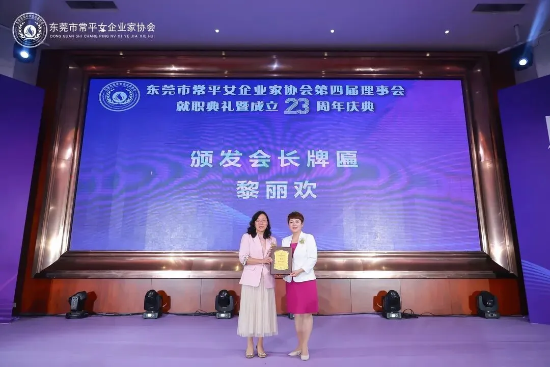 就职典礼上,播放了常平女企过去五年的工作回顾视频。随后,市、镇领导分别为常平女企第四届理事会会长、常务副会长、副会长、秘书长等颁发牌匾。其中,黎丽欢当选第四届理事会会长。