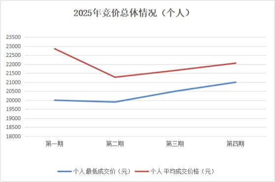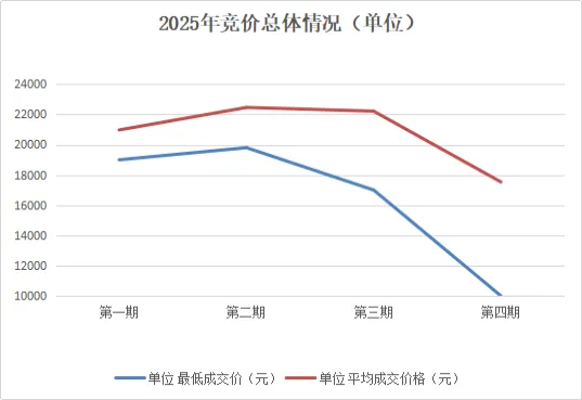 2025年第四期,深圳市粤B车牌(单位)平均成交价较上期(第三期)大幅下降。