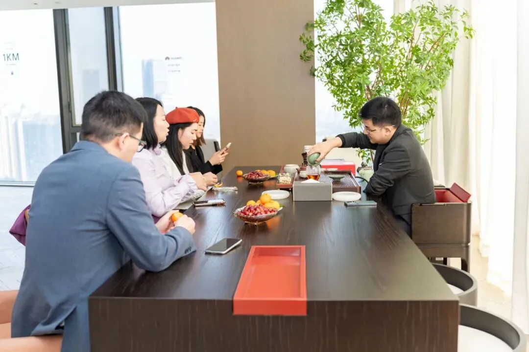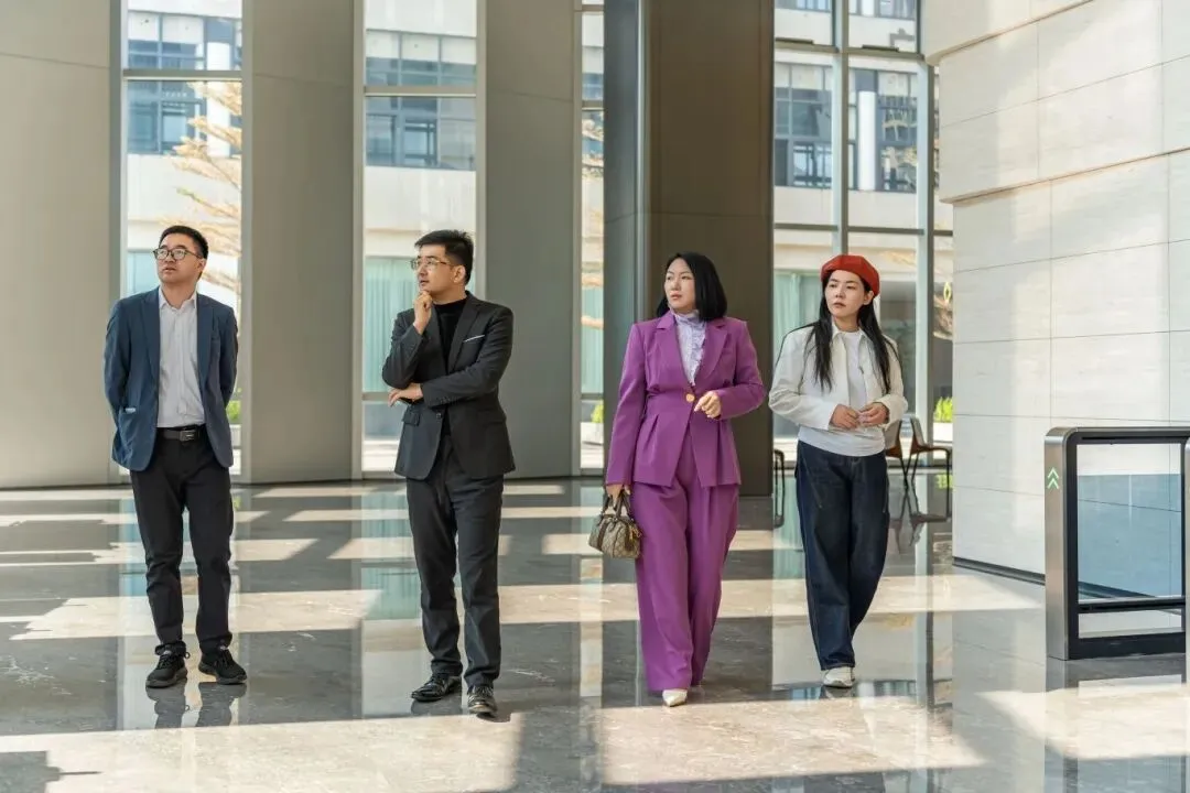 束总热情接待商会一行,并带领大家参观了园区核心区域及精品项目521TFC科技金融中心。从国际顶尖团队CCD设计的10.2米挑高酒店式入户大堂,到“楼上办公+楼下生活”全时无界空间、顶层天企汇交流中心,再到星巴克、人才公寓等成熟配套,束总详细介绍了园区规划与特色,让走访团队直观感受了35万㎡“生意+生产+生活”综合产业社区的运营实力与生态氛围。