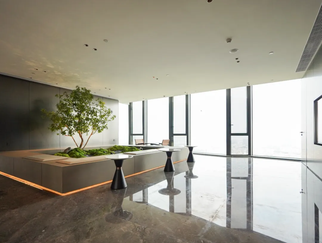 521TFC共23层,标准层面积约1500㎡,规划为一企一层,仅20席稀缺资产。项目高低分区运行,配置8台三菱全球新款电梯。首层打造约1000㎡,挑高10.2米星级酒店式双入户大堂,顶层配套项目专属企业家交流中心。
