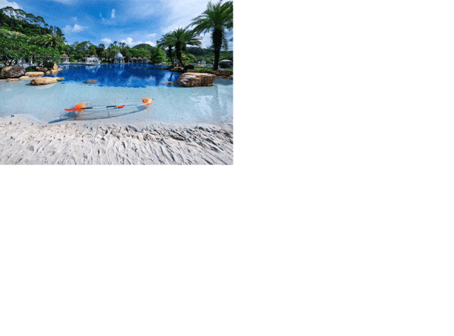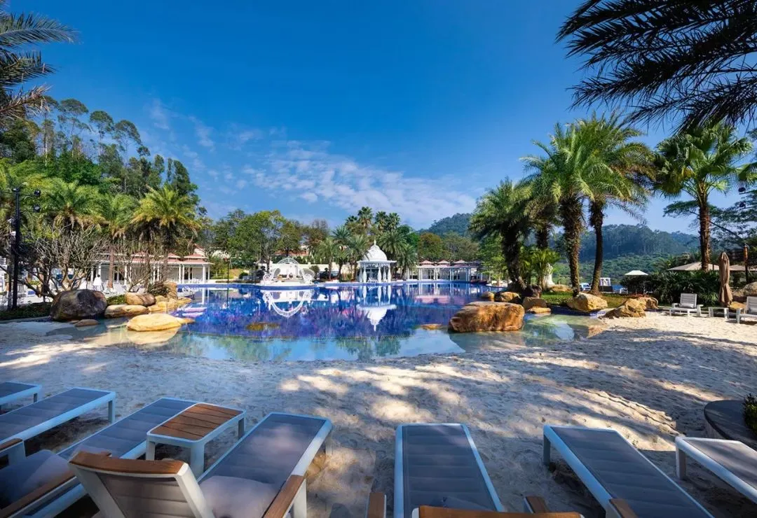泳池旁还有柔软细腻的沙滩