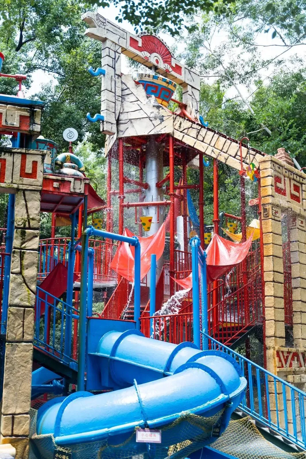 有长长的水滑梯,可爱的卡通喷水装置