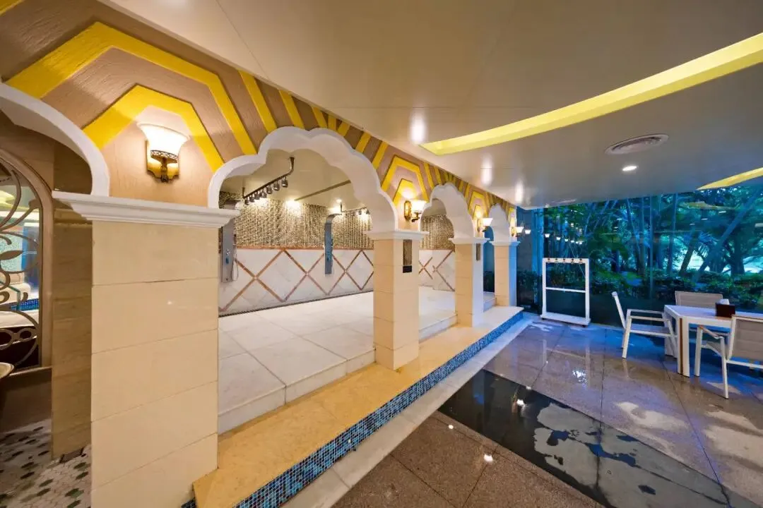 酒店设置了一片温泉水连涌的水上乐园
