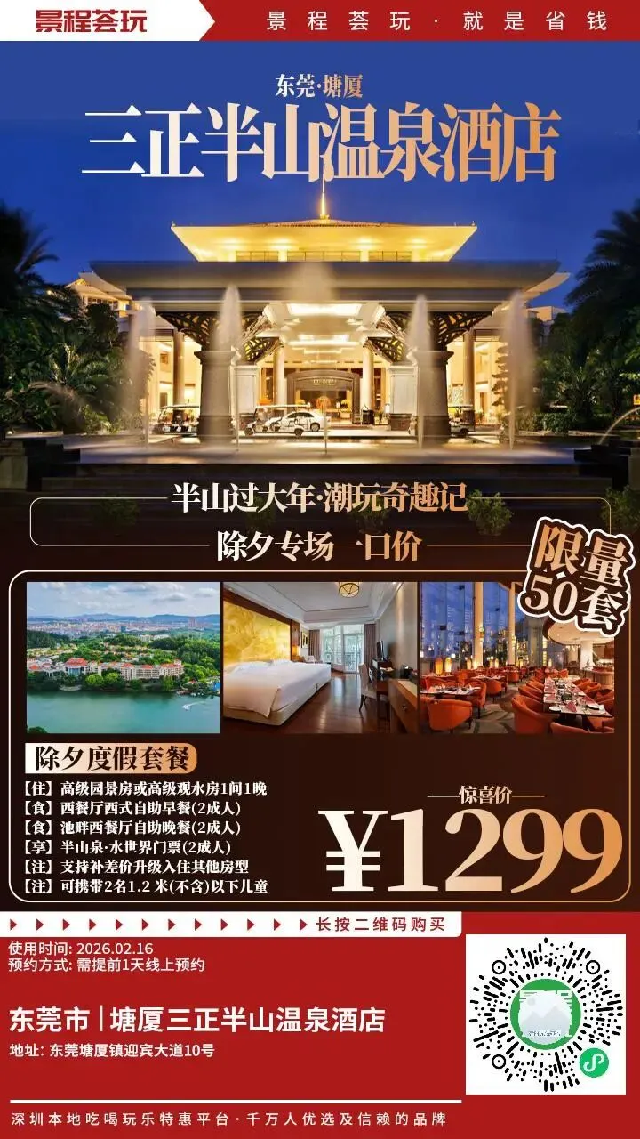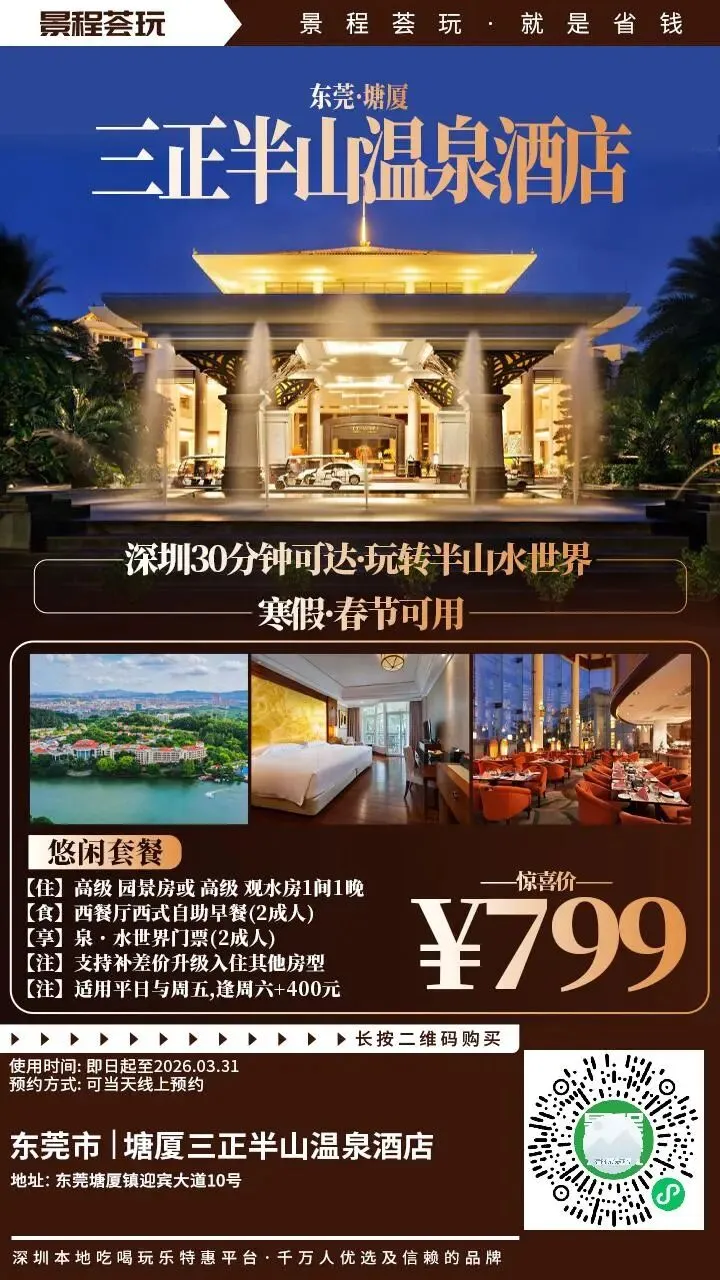 年末大促!799元起限量抢【东莞塘厦三正半山温泉酒店】度假套餐!深圳30分钟可达,畅享第①真温泉!