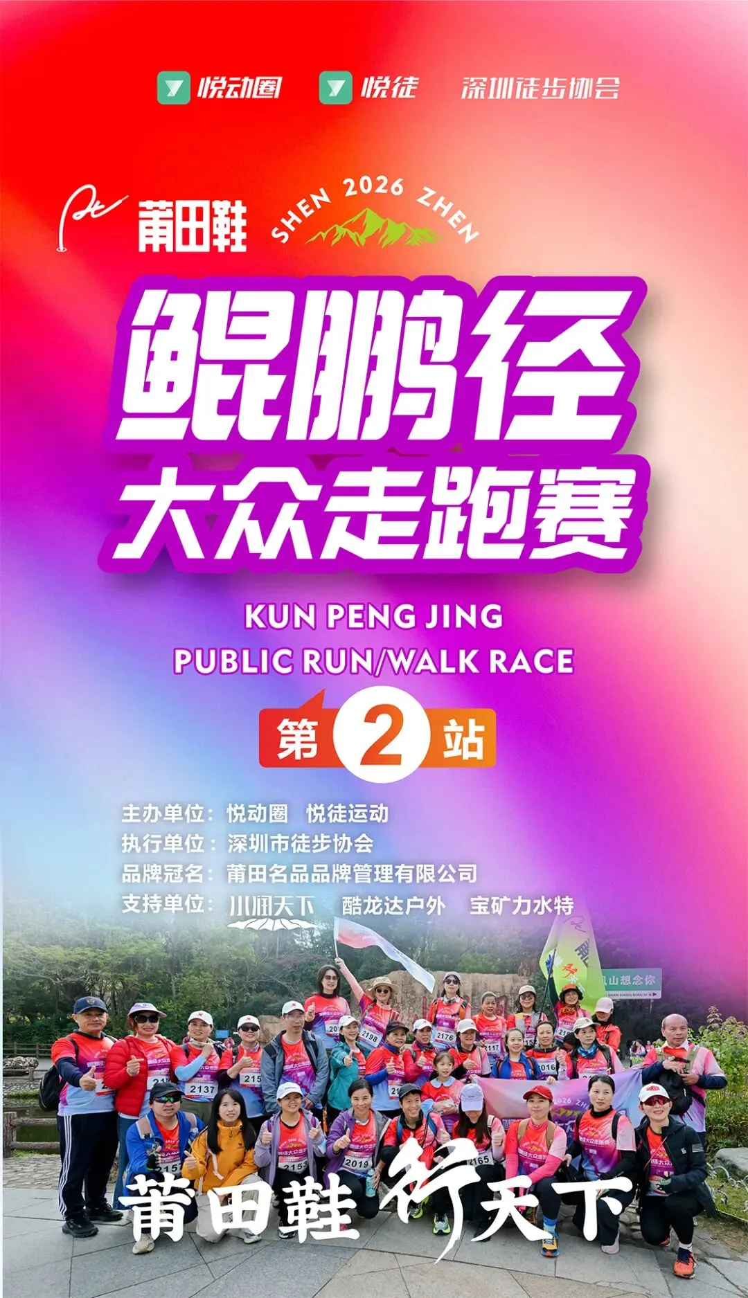 鲲鹏径全长200公里、分20段,串联深圳十余座山峰、二十余个郊野公园等自然与人文地标,尽览山海风光。赛事福利加码,赛中互动问答可抽取莆田鞋运动鞋,“莆田鞋,行天下”以专业装备护航,邀你解锁户外乐趣!