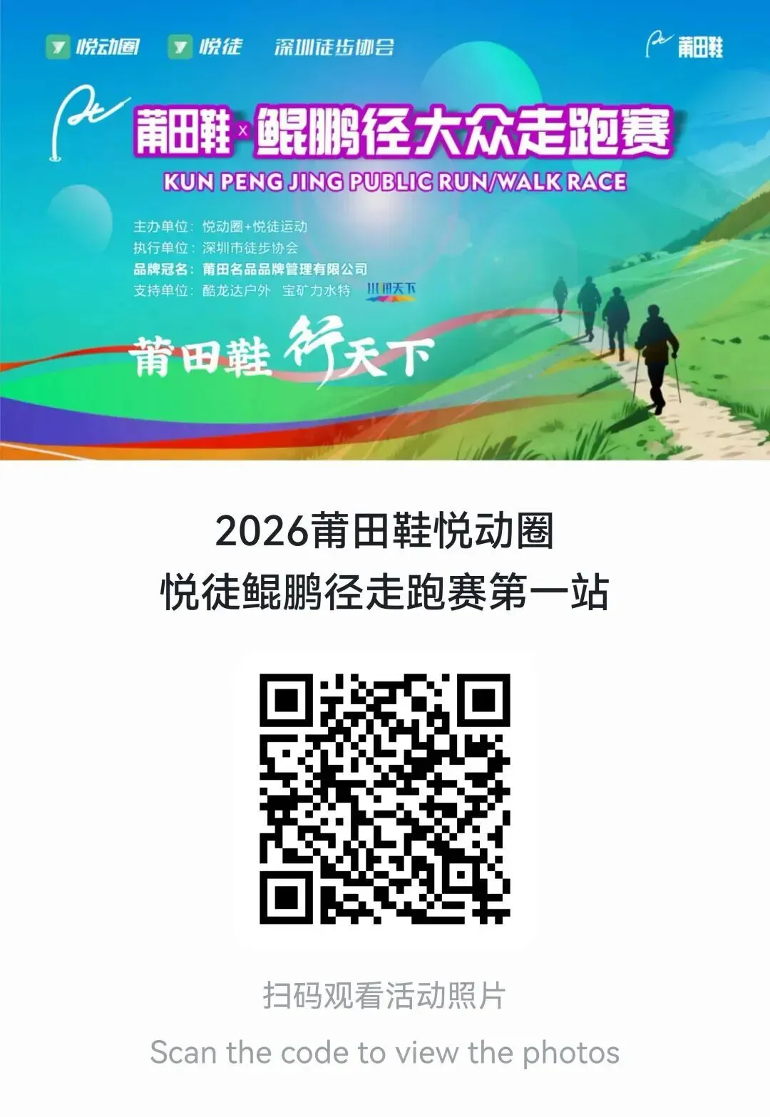 走跑赛即可走可跑、灵活适配的户外赛事,选手可根据自身状态自由切换节奏。本次赛事由莆田鞋独家冠名。水润天下、宝矿力水特、酷龙达户外用品等提供赞助支持。