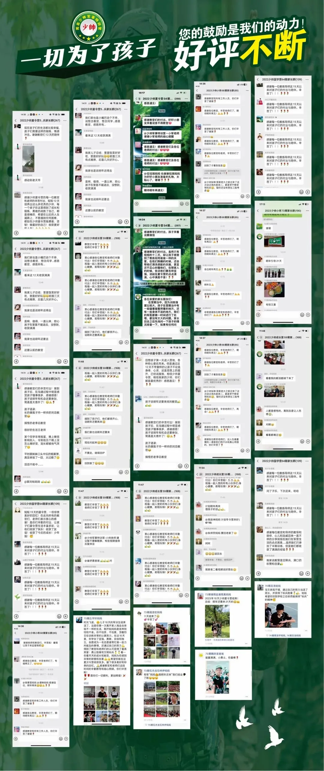 少帅军事特训营创立于2009年,国家商标局注册商标,专注服务6-16岁青少年素质教育。课程针对青少年健康成长精心设计,采用45%军事训练+15%内务管理+25%趣味军旅拓展+15%生命安全教育及野外生存的课程比例。通过全封闭军校生活,培养孩子自信、自律、自强、坚韧刚毅、积极上进的卓越品质。