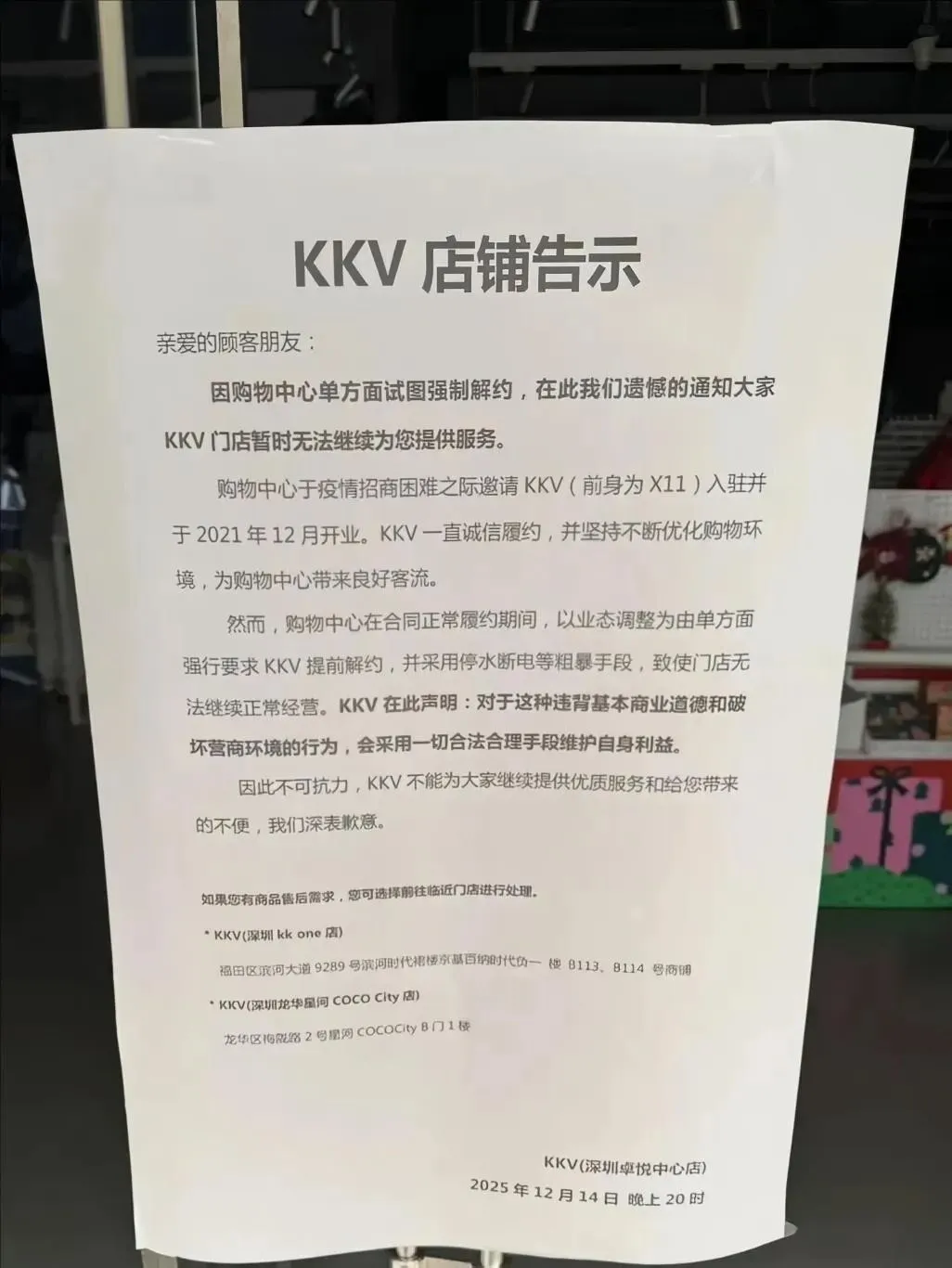 从2025年9月起,商场就因业绩问题与KKV进行了长达数月的多轮沟通,甚至提出了减少面积、换到更好位置等方案。但KKV方面据称拒绝了这些方案。