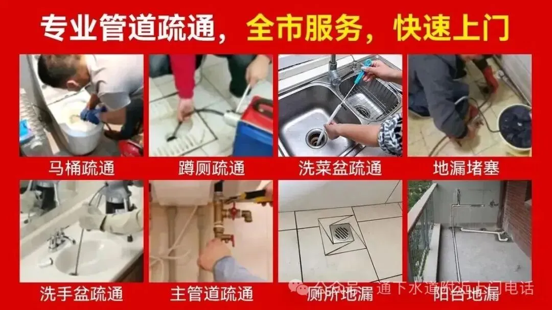 下水道疏通:卫生间下水道疏通、厨房下水道疏通,阳台下水管道疏通。