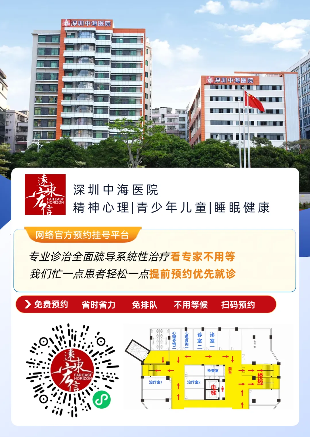 深圳中海医院,宏信健康品牌,始建于2004年,是经深圳市卫生健康委员会批准设立。建筑面积1.76万平方米,其中深圳中海医院精神心理科作为精神卫生、心理康复、心理预防特色的区域性单位,重点发展临床心理、睡眠医学、儿童青少年心理行为、情绪障碍诊疗、心理危机干预与康复等特色服务,构建“评估一干预一疗愈一康复”一体化服务模式。