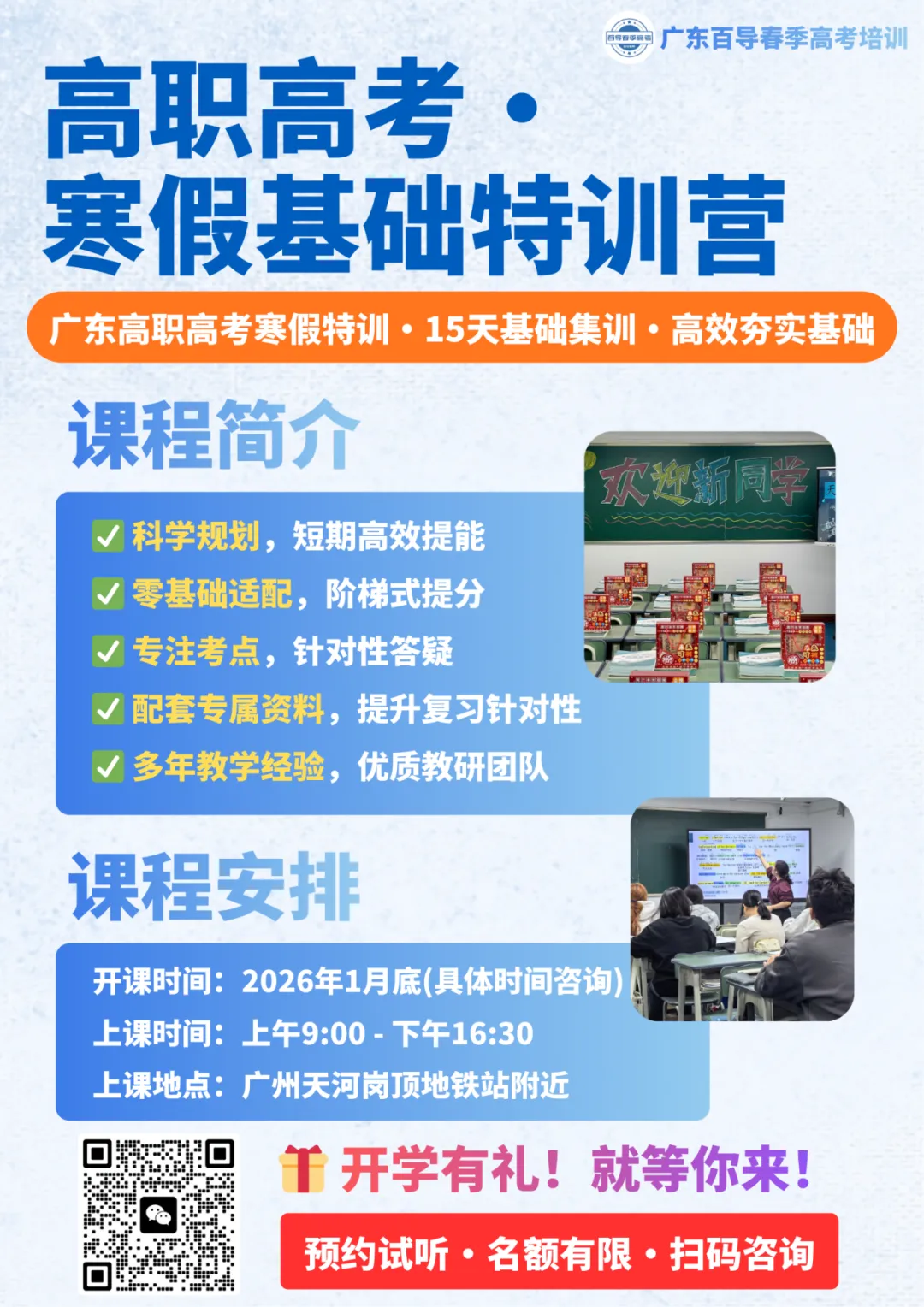 中职生寒假补习!高职高考15天寒假班,广州近地铁,优秀师资,基础教学,手机严格管控,中一中二首选!