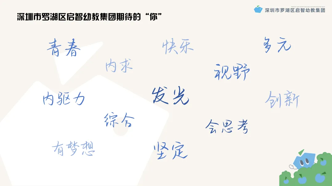 3.热爱幼教事业,具有较强的服务意识和沟通能力,善于学习、有责任心、耐心、细心、吃苦耐劳、做事踏实,品行良好,服从工作安排,有团队协作精神;
