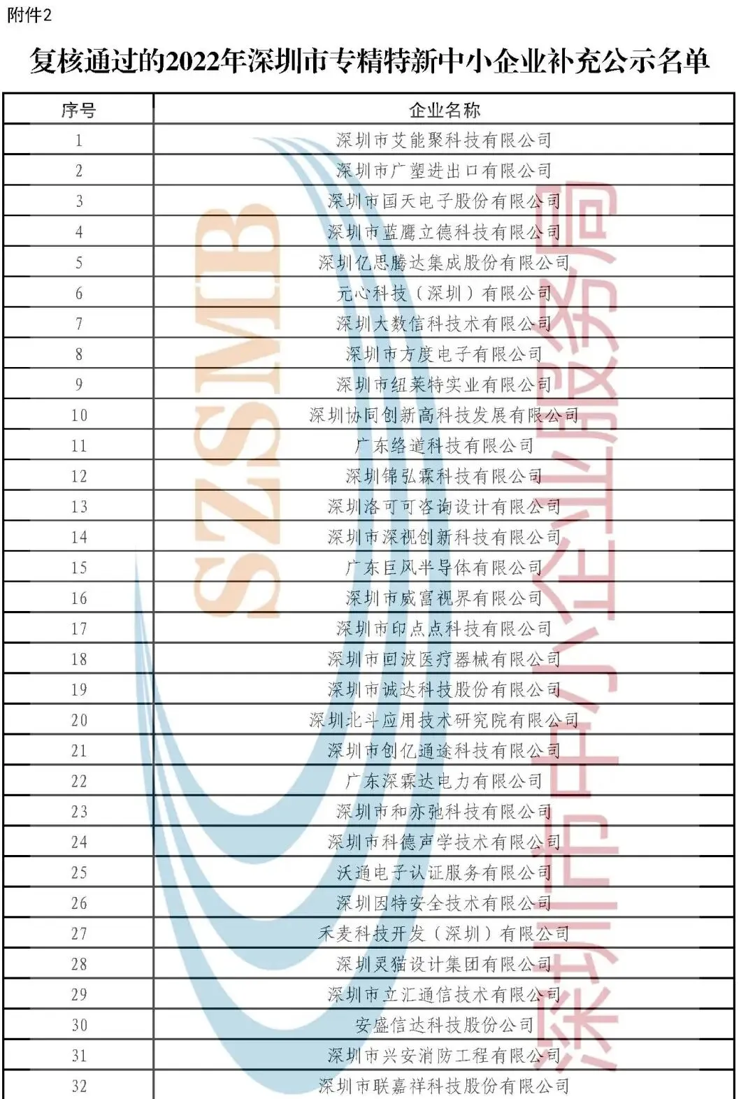 关于2025年深圳市专精特新中小企业及复核通过的2022年深圳市专精特新中小企业名单的补充公示