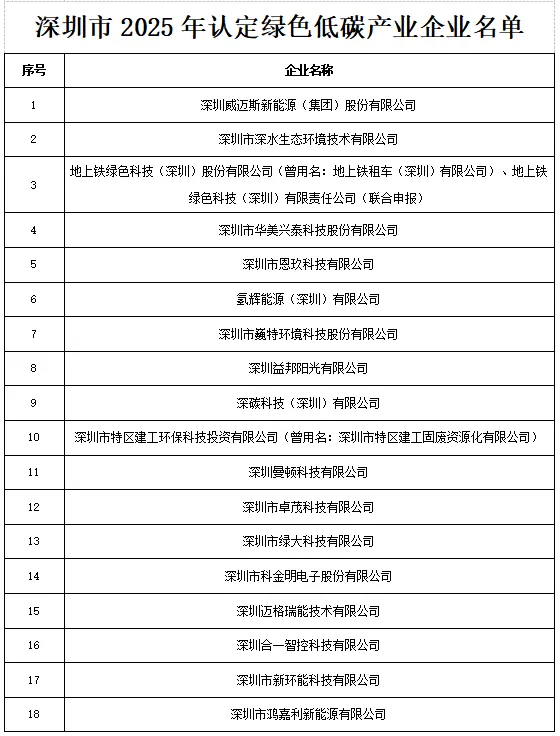 关于深圳市2025年认定绿色低碳产业企业名单