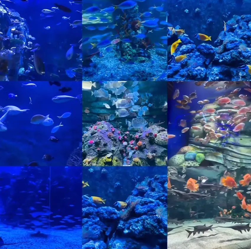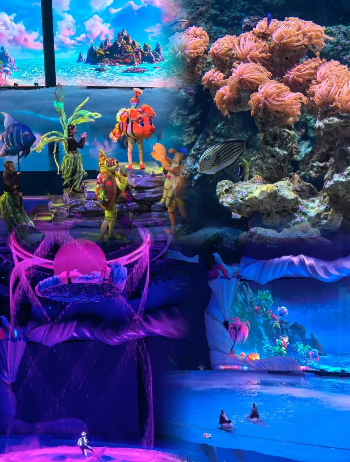 热带鱼群、水母世界、鲸鲨池《人鱼秘境》表演等。