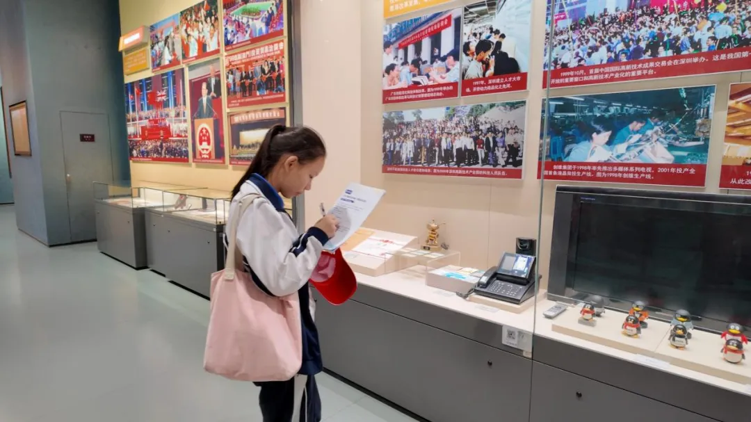 活动中,学生们化身 “特区文化宣传大使”,带着探究热情与自主提问走进展厅。围绕 “破冰时刻”“创新基因”“人的故事” 三大主题,大家在泛黄的史料、鲜活的实物与生动的场景中,探寻深圳从 “先行先试” 到 “先行示范” 的奋斗轨迹。从改革开放初期的政策突破,到市场经济浪潮中的勇立潮头,每一件展品都在无声诉说着 “敢闯敢试、开放包容、务实尚法、追求卓越” 的深圳精神。研学手册精心设计的任务体系,将历史知识与实践体验深度融合,激发了学生们的探究热情与思辨能力。