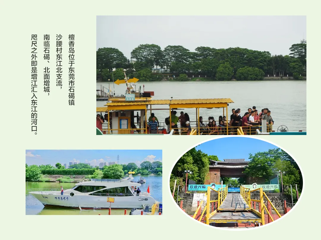 东莞市石碣檀香岛,坐落于东莞市石碣镇沙腰村东江北干流岛屿上,为东江冲积出来的沙洲岛,得益于大自然的鬼斧神工山灵水秀,素有“东江上的日月潭”之称。檀香岛四周环水,远离城市喧嚣。所有进岛游客必须在沙腰码头乘船登岛。