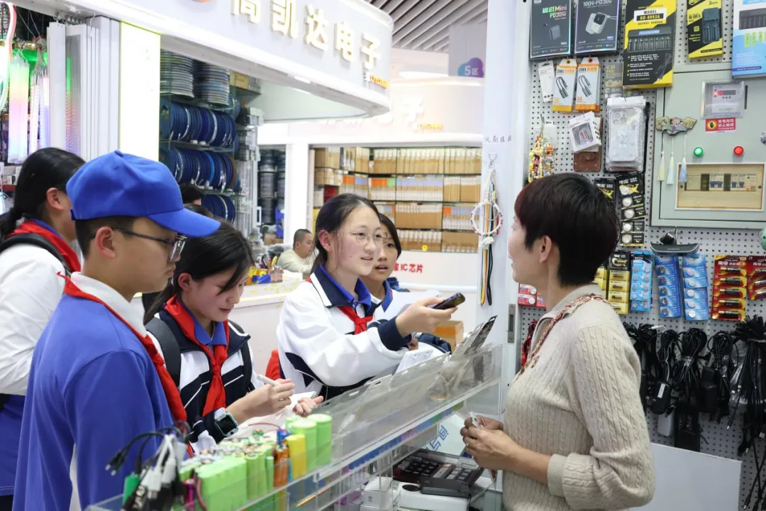 走进赛格电子市场,学生分组访谈 10 年以上资深电子商户,从 “服务好、价格优、材质硬” 的经营心得中,提炼改革浪潮中商户们的生存智慧与创新密码。从设计访谈问题、礼貌沟通到整理核心信息,学生的创造力、合作力与沟通力在真实商业环境中得到综合锤炼,此前立下的 “5C 素养之星” 目标,此刻化为践行改革精神的实际行动。(注:5C 素养是面向 21 世纪核心能力的 5 项以“C”字母开头的关键素养——文化理解与传承(Cultural Competence)、沟通(Communication)、合作(Collaboration、创新(Creativity)、批判性思维(Critical Thinking))