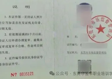 3,理论实操考试合格后,由东莞市场管理监督局颁发证件。