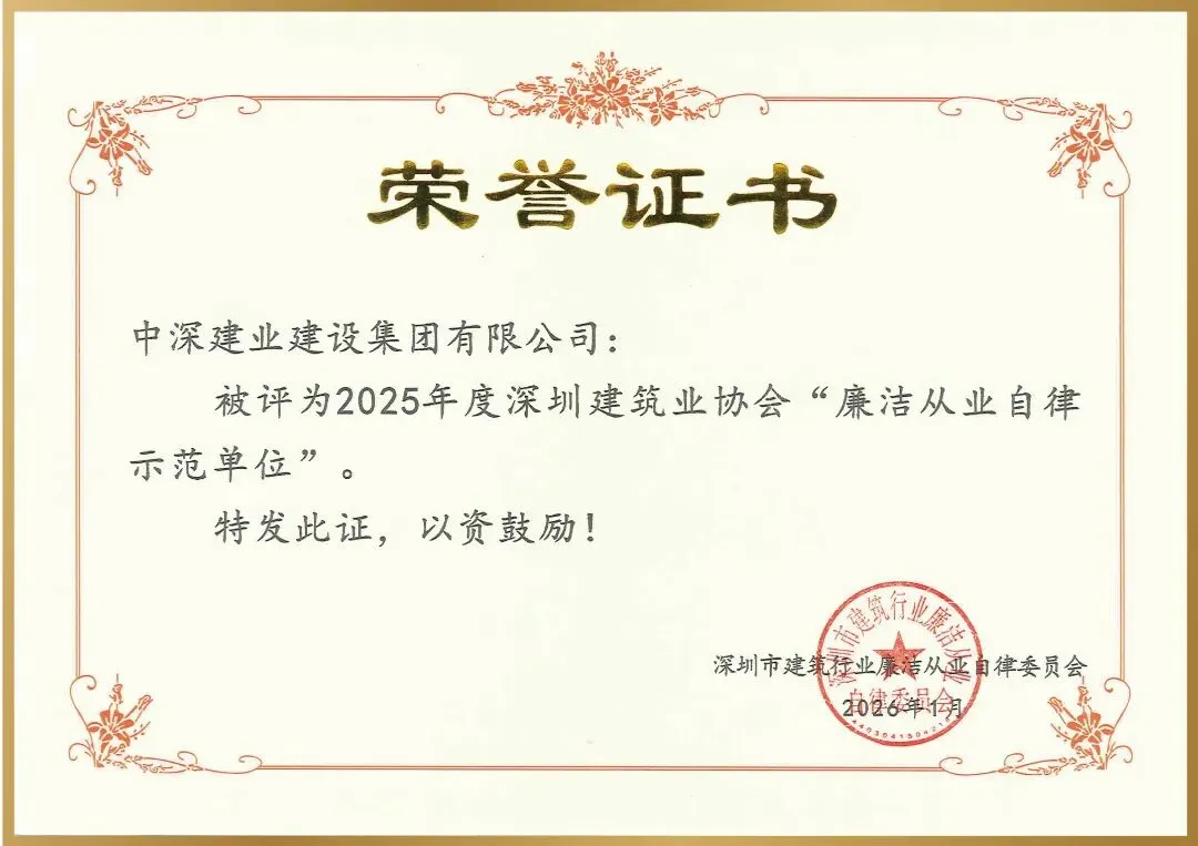 此外,大会发布了《深圳市建筑行业年度发展报告(2024)》,为行业提供权威参考,并向部分评先创优活动的获奖者代表颁奖,表彰他们在推动行业进步中的卓越贡献。中深建业集团凭借在2025年度的突出表现,荣获多项荣誉。