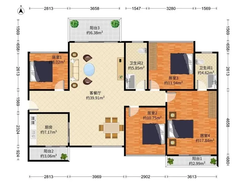 【户型】:四房两厅
