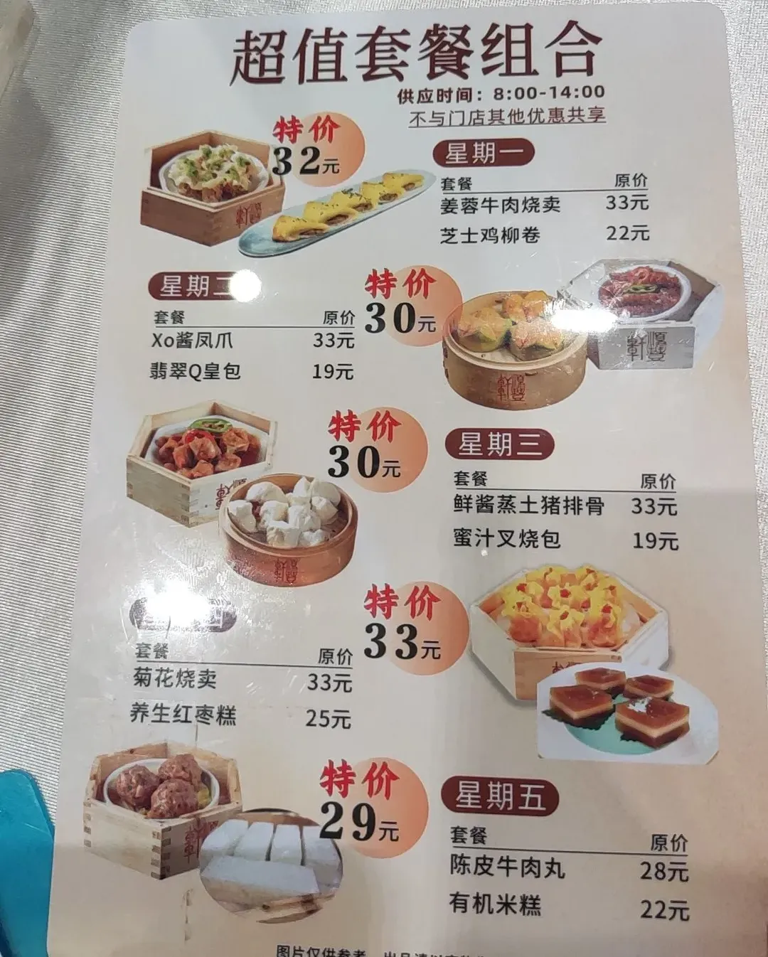 百果香咕噜肉、招牌蚝仔烙、啫啫拆骨猪手、薄荷乳鸽、红曲米脆肠、藤椒菌香烧麦。