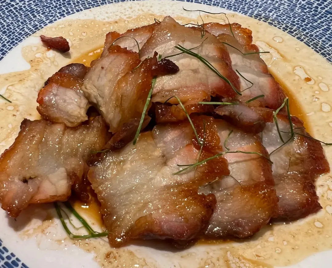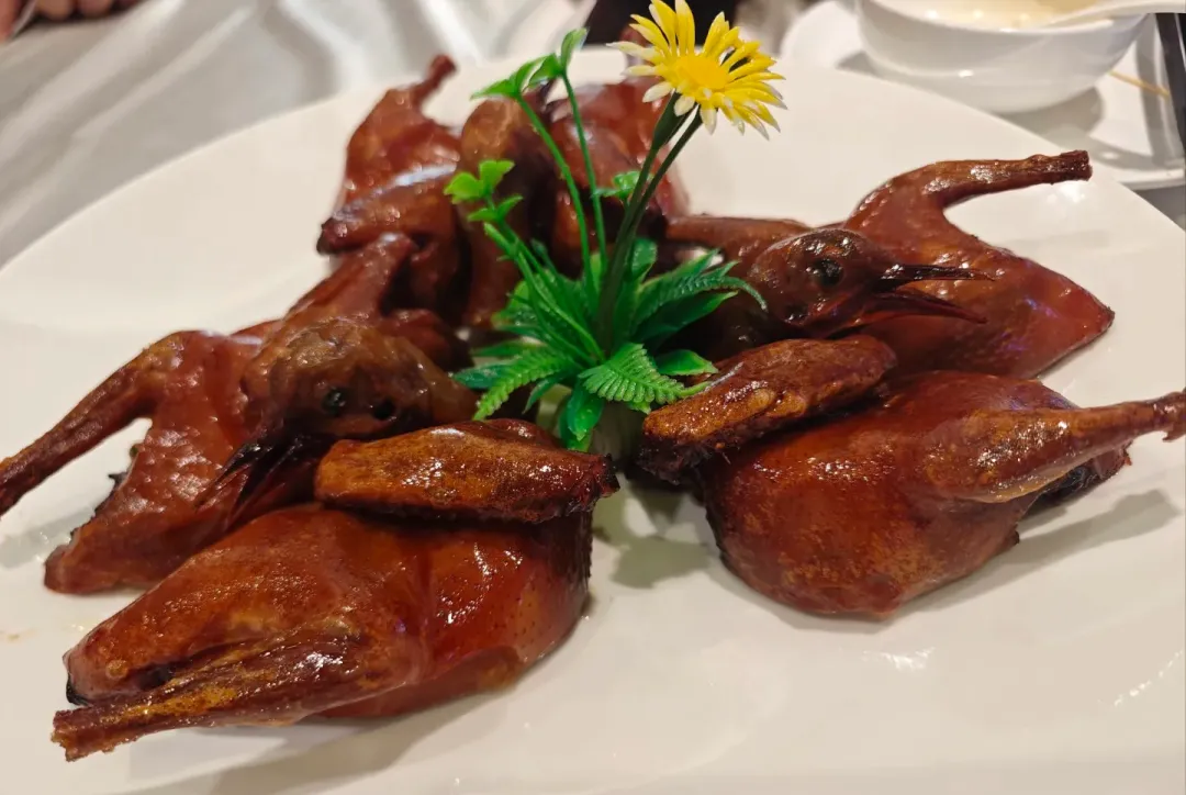 薄荷乳鸽:乳鸽烤得红亮油润,皮脆到 “咔嚓” 响,咬开是爆汁的嫩肉,带着淡淡的薄荷香。