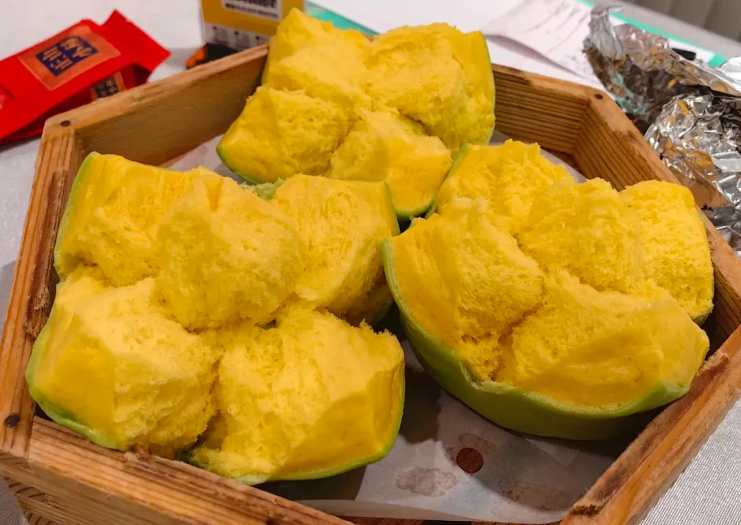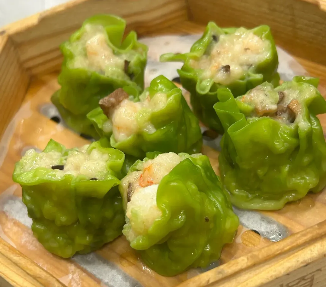 藤椒菌香烧麦:翠绿的烧麦皮裹着菌香肉馅,藤椒的微辣混着菌香直钻鼻子。咬开是软嫩的肉馅,带着藤椒的麻香和菌菇的鲜,皮糯肉嫩,一口一个超满足,完全是早茶隐藏宝藏!